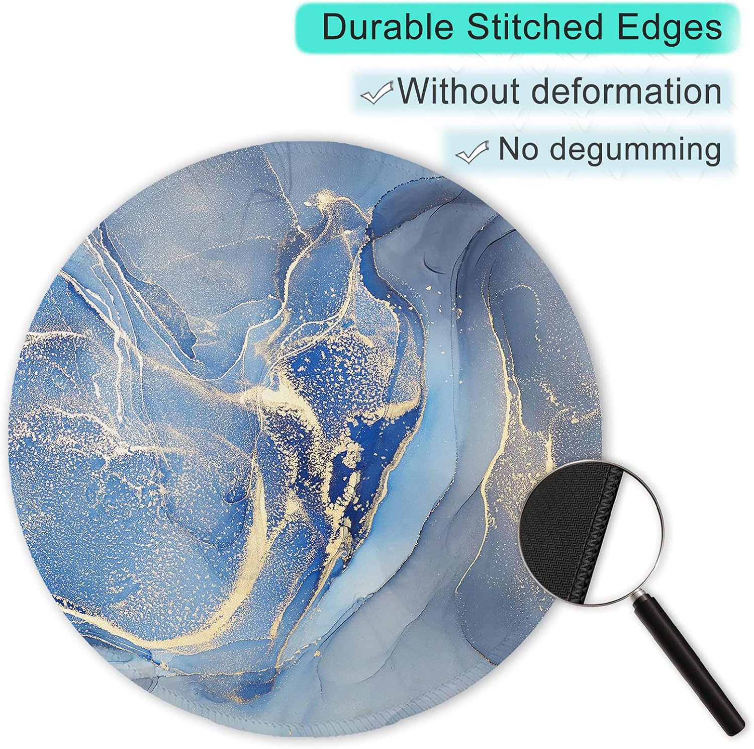 ITNRSIIET Round Mouse Pad with Stitched Edge Premium-Textured Waterproof Non-Slip Rubber Base Desktop Protection Mat Diameter 8.7 inches, Blue Marble Texture