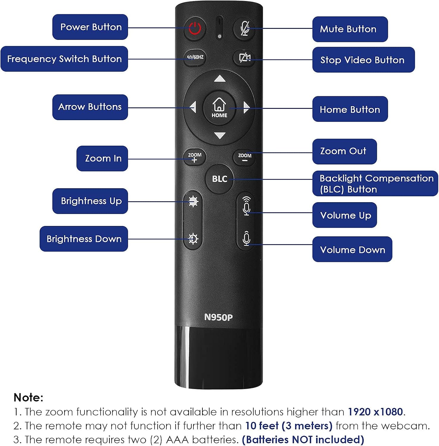 - 【Remote with 5X Digital Zoom】Control your video calls with a remote, so even away from the desk you are still in charge. Turn off the webcam, adjust the volume, zoom in and out, mirror/flip your image, and more. With support for 5X digital zoom at 1080P, the NexiGo 4K webcam makes it possible to zoom in gradually with the single press of a button. 【Note:】Please do not use the power button to turn off the camera.
