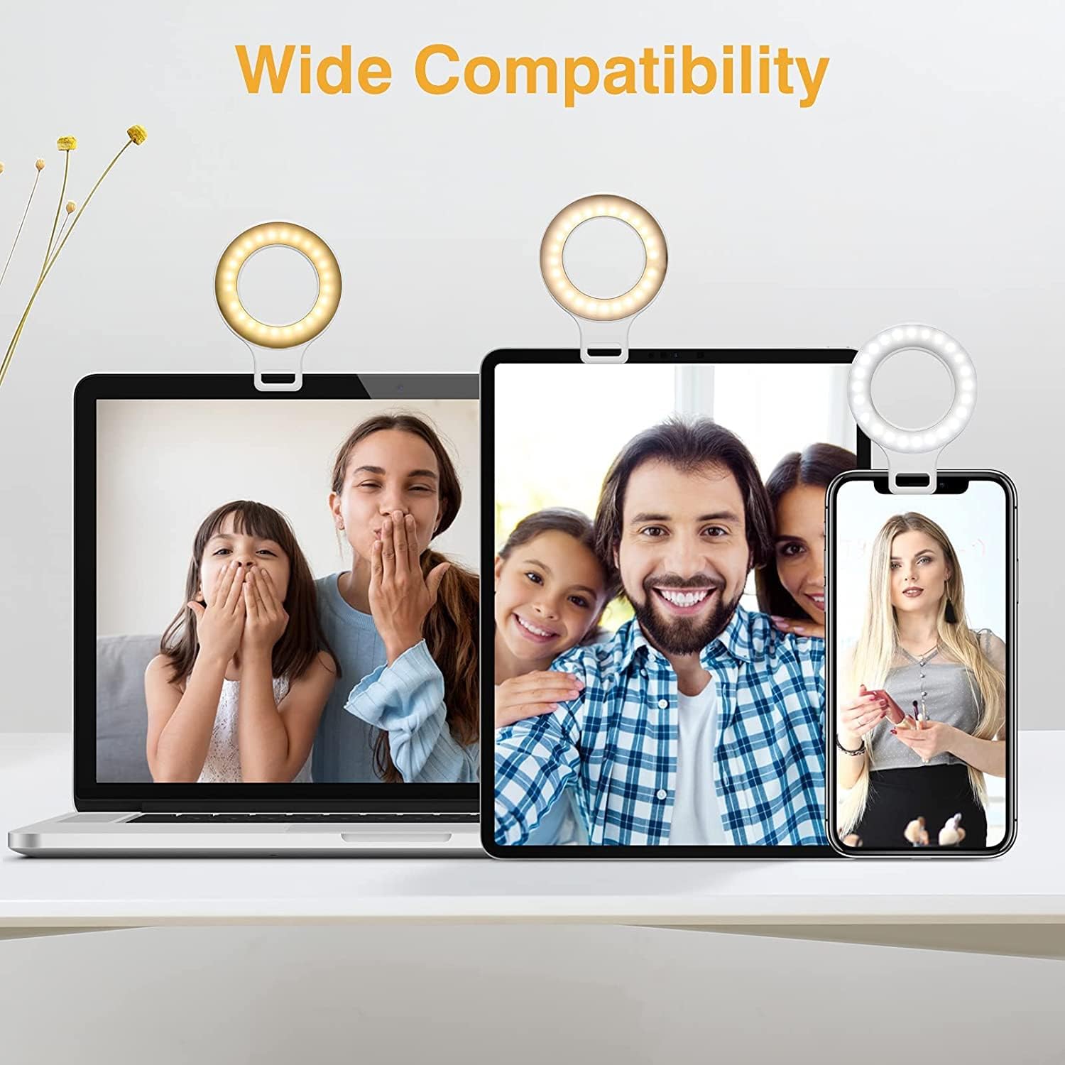 Clip on Ring Light, Kimwood Rechargeable 60 LED Selfie Ring Light for Phone, Laptop, Tablet (3 Models, 5 Level Brightness)