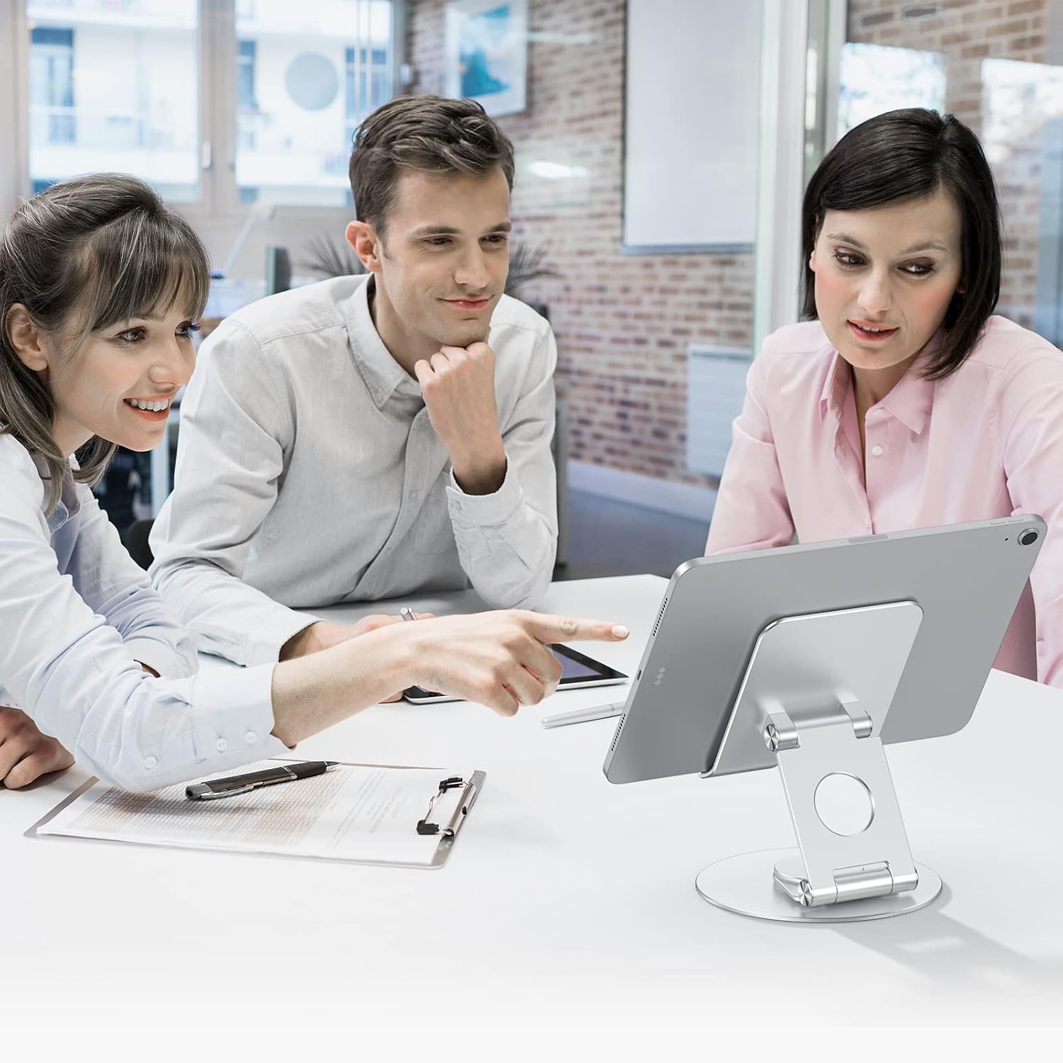 - 【360°Rotation】With a 360°rotating base, you can easily share your creation or business ideas with one-hand direction control. No need to move the traditional tablet stand back and forth like before