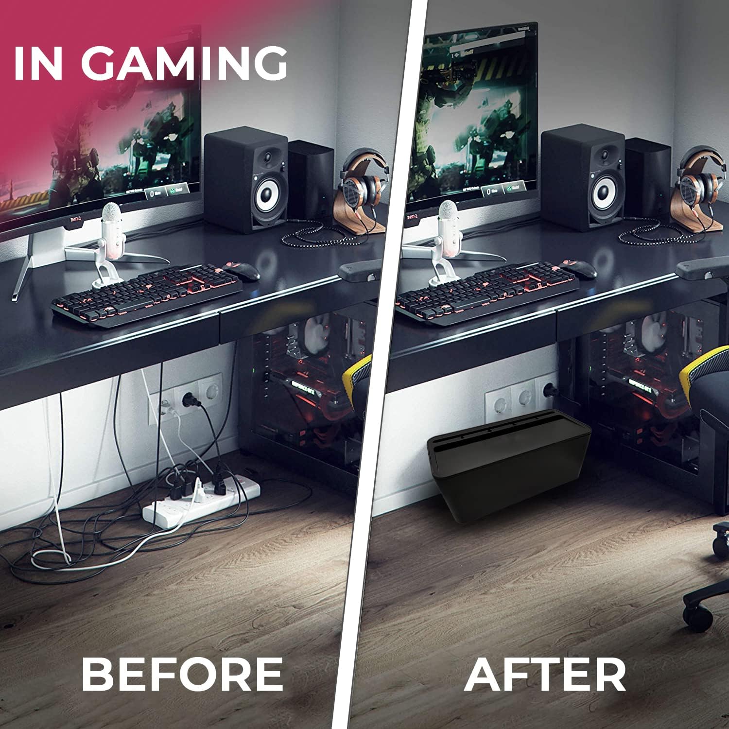 - Hide any Cables - The cable management box provides a space to hide and store up to 6 cords, plugs, and power strips to neaten up your space and create a clear and comfortable place to work.