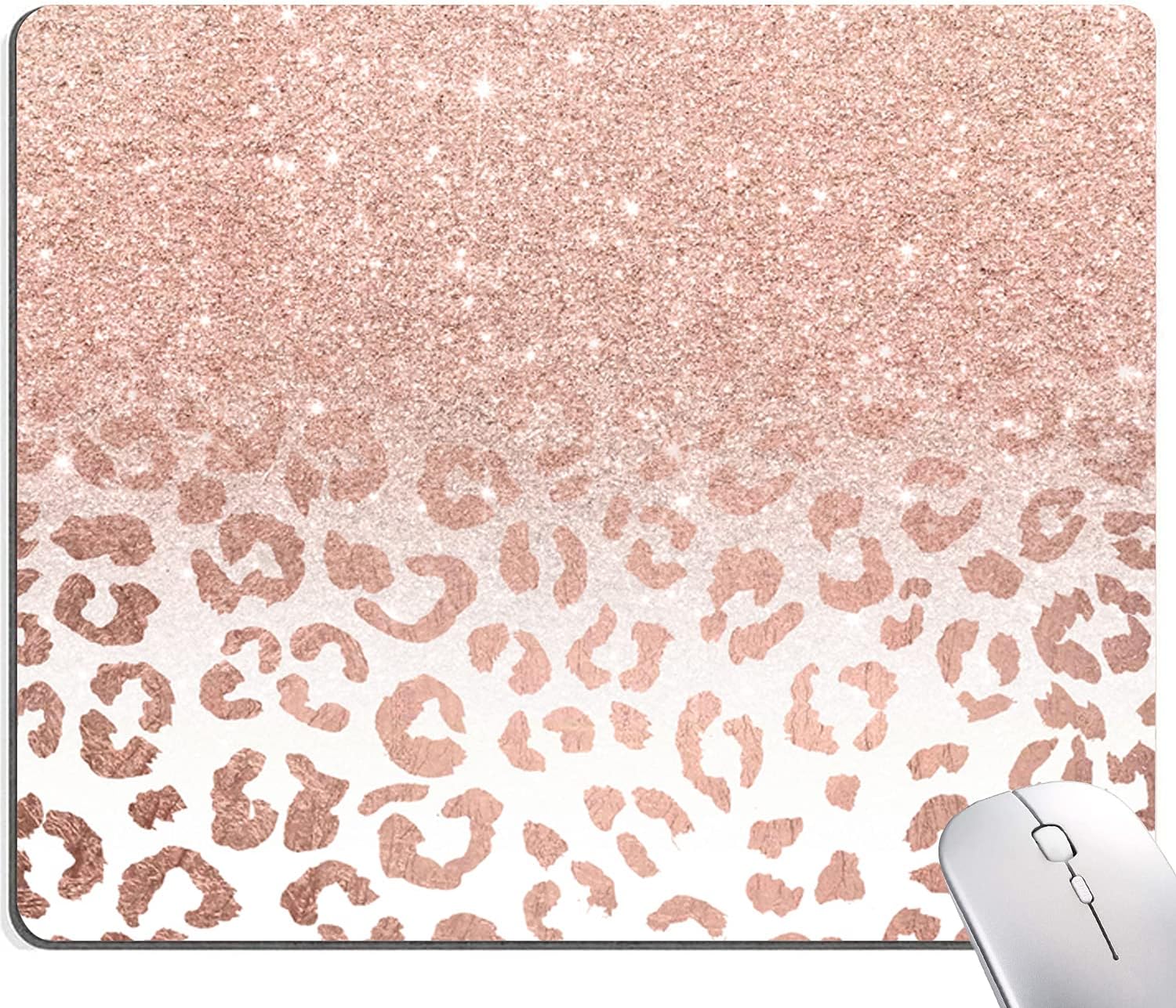 Mouse Pad, Animal Print Mouse Pad Custom Design, Square Waterproof Mouse Pad Non-Slip Rubber Base MousePads for Office Laptop, 9.5"x7.9"x0.12" Inch(Pink Glitter Leopard)