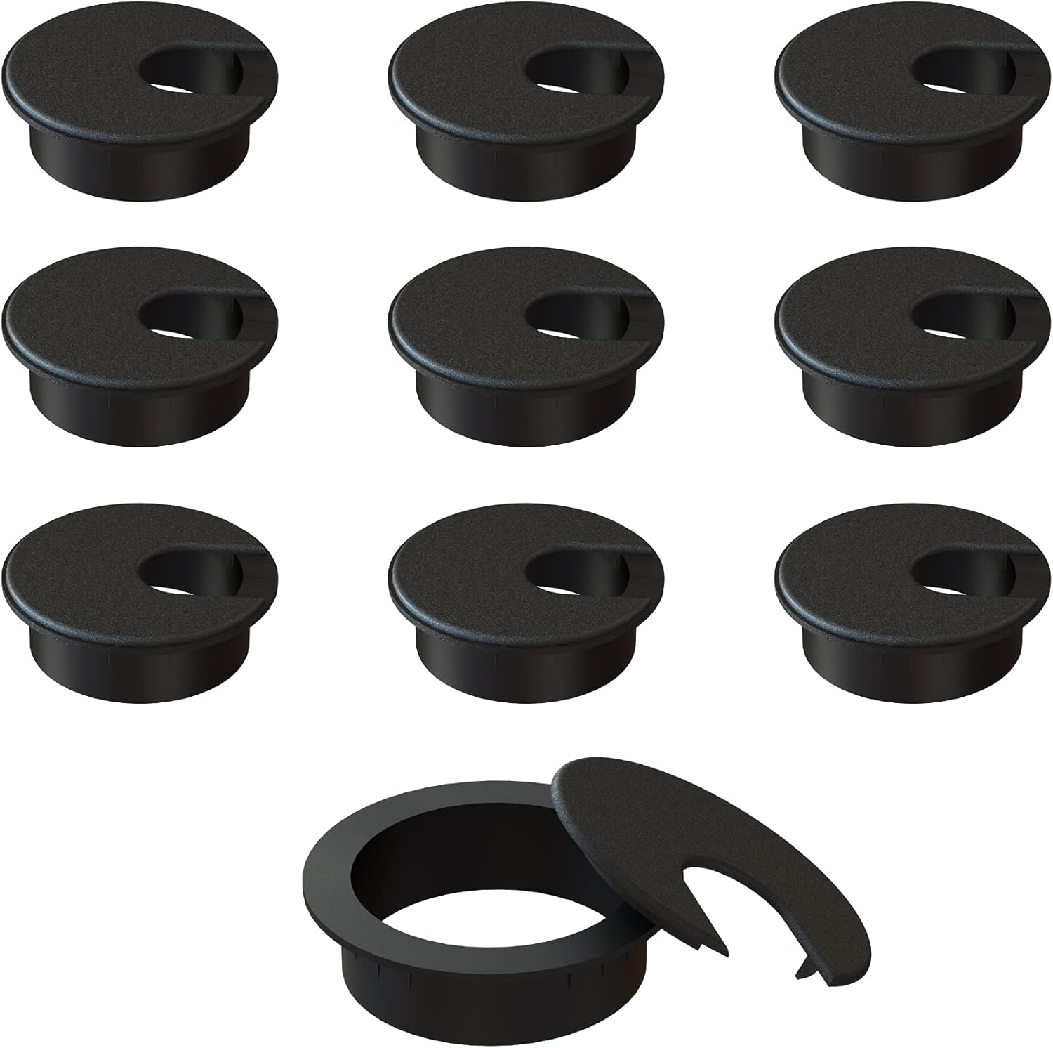 MAHDPRO Desk Grommet 2 Inch (50 mm) Pack of 10 - Black ABS Plastic Desk Cord Hole Cover to Arrange Cables & Wires Through Computer Table/Countertops