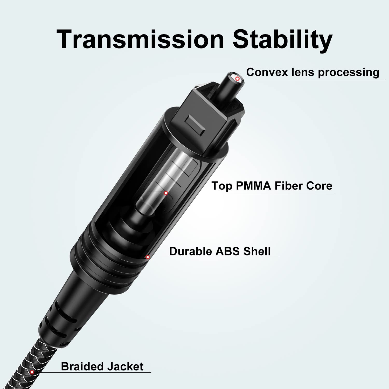 - Superior Sound Quality: Experience unparalleled audio clarity with our premium fiber optic cable, delivering high-fidelity signal transfer for multi-channel surround sound. Supports uncompressed PCM audio and advanced 5.1 to 7.1 surround sound formats including Dolby Digital Plus, DTS-HD High Resolution, and LPCM for truly immersive listening.