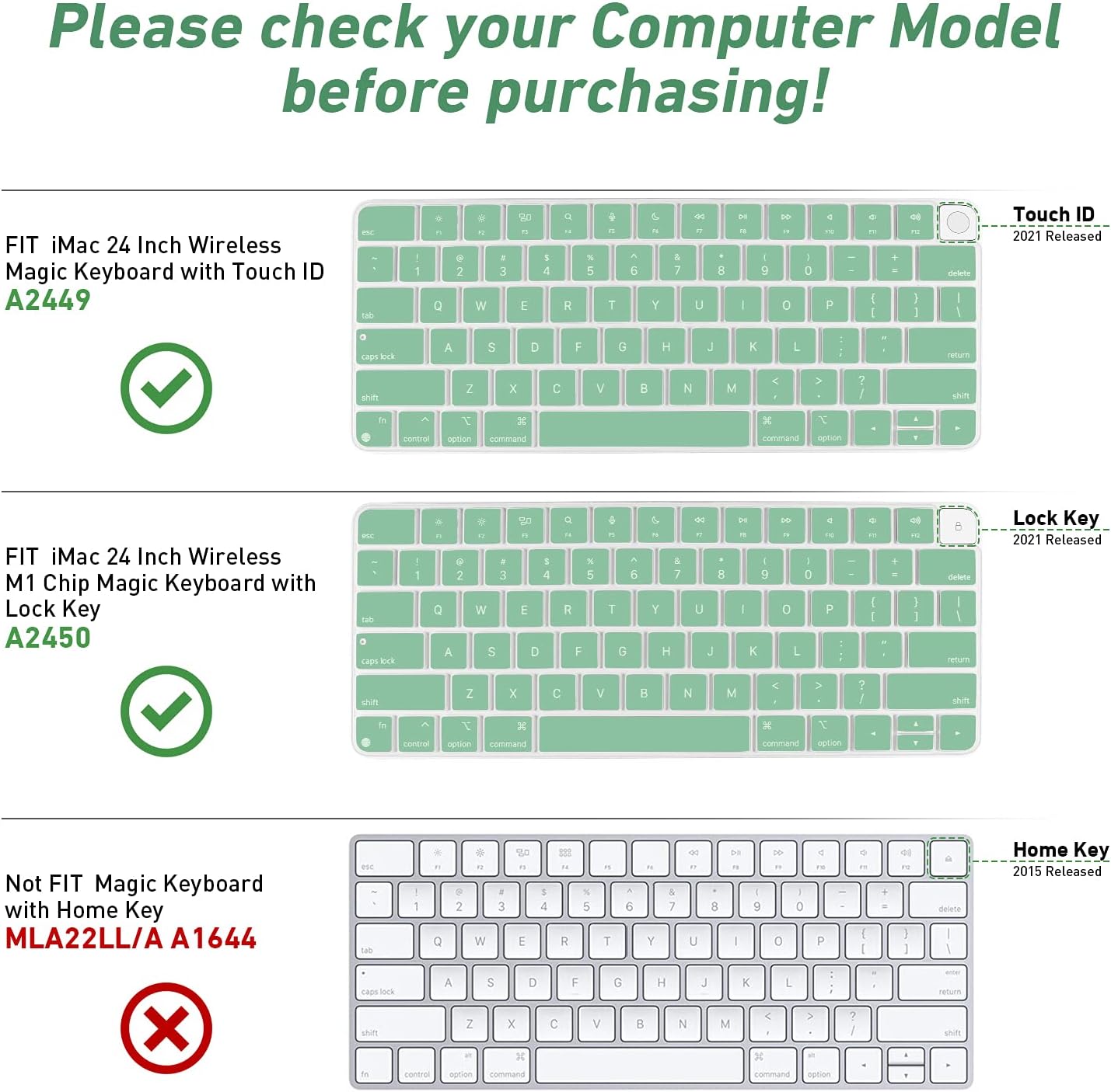 - COMPATIBILITY: Fits perfectly for iMac 24" Wireless Magic Keyboard (Model A2449/A2450) released in 2021, which is US keyboard layout without Numeric keypad. Please check your keyboard layout carefully before purchasing.