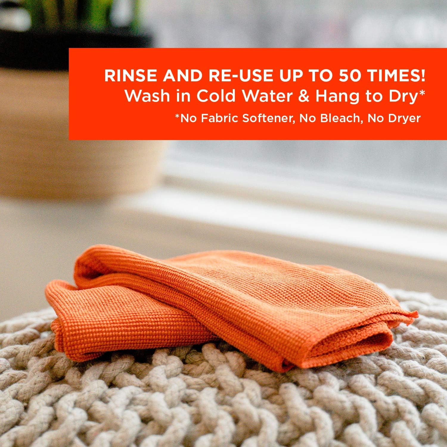 - WHAT’S INCLUDED - Each pack contains three 14x14” Micro Fiber Cleaning Cloths in orange color, for multipurpose cleaning.