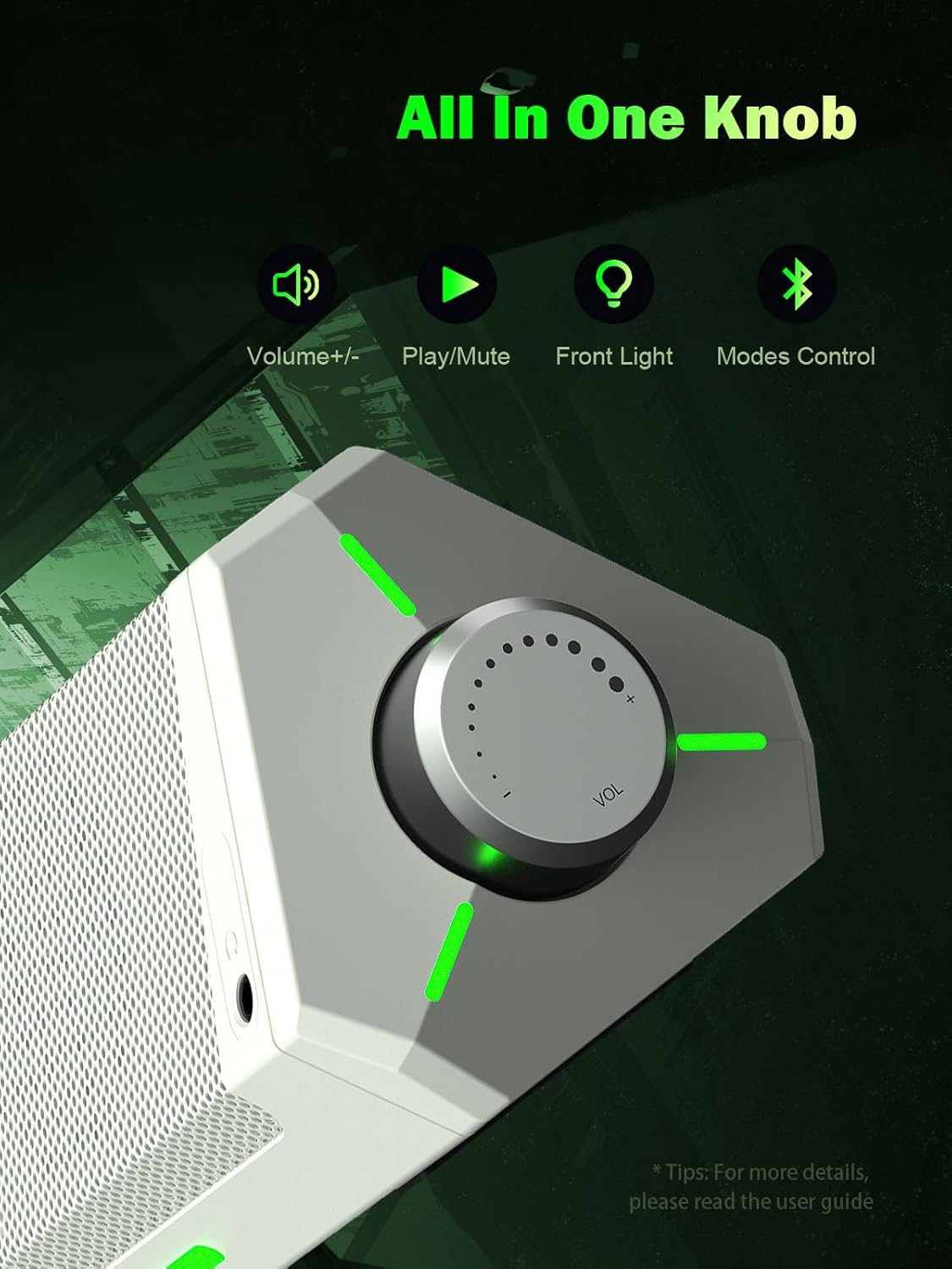 - 【Relaxing Ambiance Lights】Gentle light strips complement the avant-garde design of the computer speaker, elevating your auditory experience, and adding a touch of elegance to your desk.