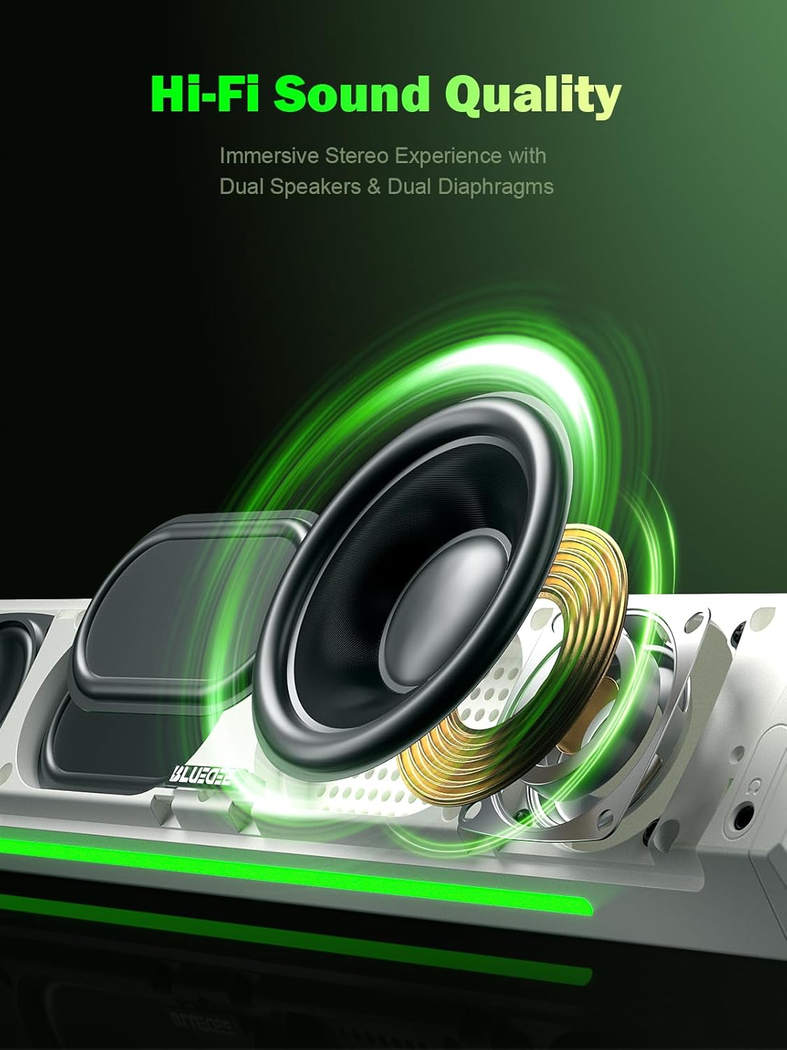 Bluedee Computer Speakers, Bluetooth Computer Soundbar, HiFi Stereo, 3.5mm Aux-in Connection, USB Powered Computer Speakers for Desktop Monitor, PC, Laptop, Tablets