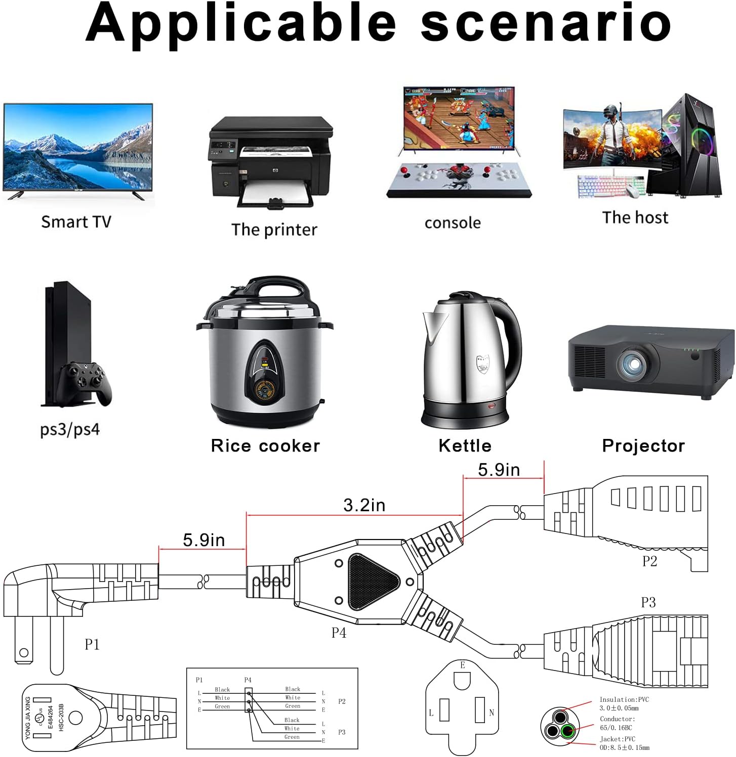 - 【Flat Plug】This Y Splitter extends your power cord and angles the plug off to the side so that it can sit flat against the wall and free up other outlets. Position your furniture close to the wall, maximize space on your power strip, surge protector, or wall outlet.