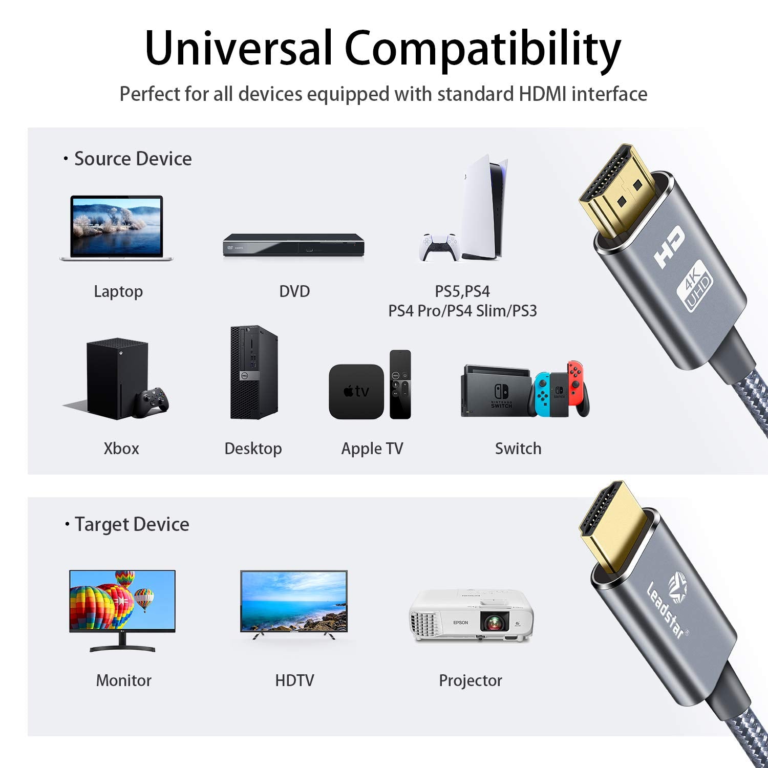 LEADSTAR HDMI Cable 4K 2 ft / 0.6m, High Speed HDMI 2.0 Cord Braided | 4K@60Hz, Ultra HD, 2160p, ARC, HDR, 3D, HDCP 2.2 | for Xbox, PS5, TV, Laptop, Monitor
