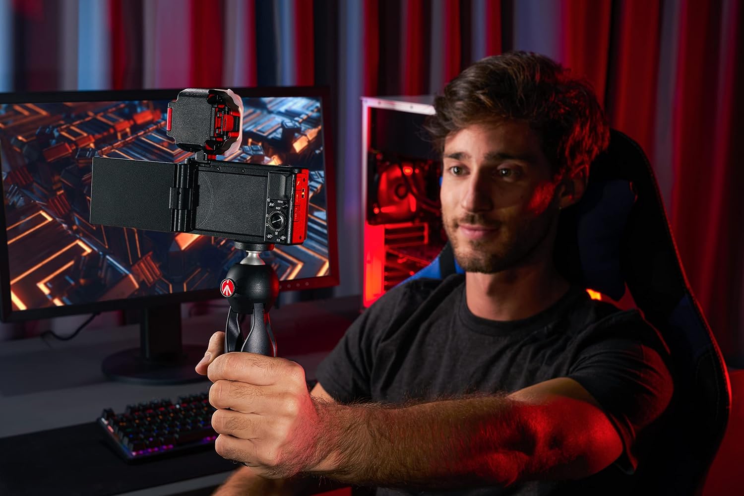 Manfrotto MTPIXIMII-B, PIXI Mini Tripod with Handgrip for Compact System Cameras, for DSLR, Mirrorless, Video, Made in Italy, Technopolymer and Aluminum, Black