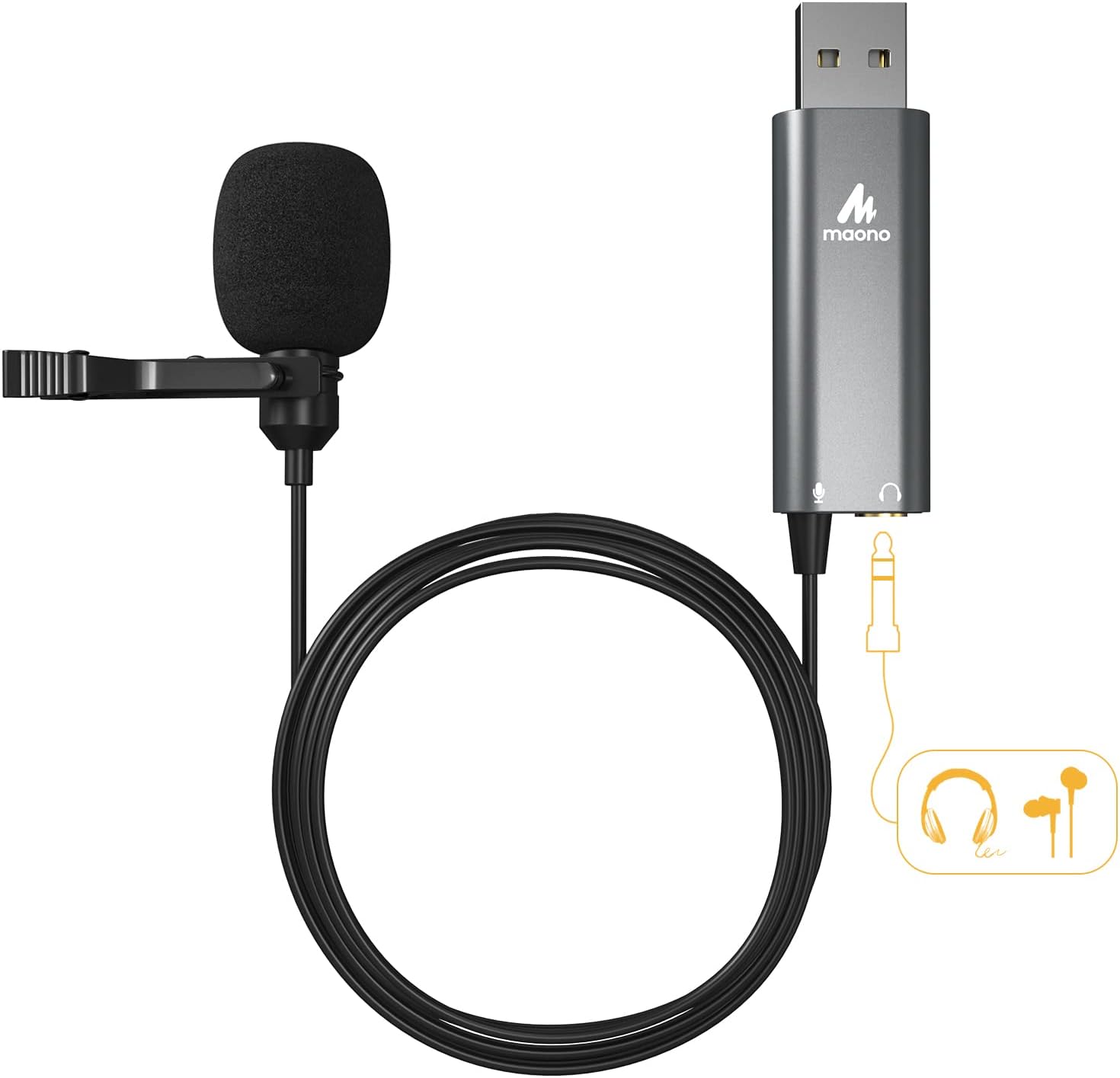 MAONO USB Lavalier Microphone with Headphones Jack, Omnidirectional Computer Lapel Clip Mic for Recording, Gaming, Streaming, Podcasting, YouTube, Skype, PC, Laptop, Mac, AU-UL20