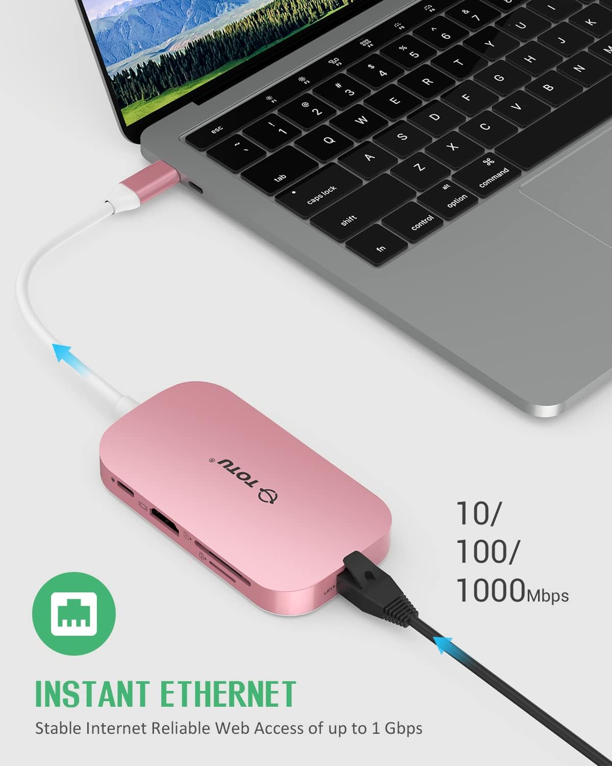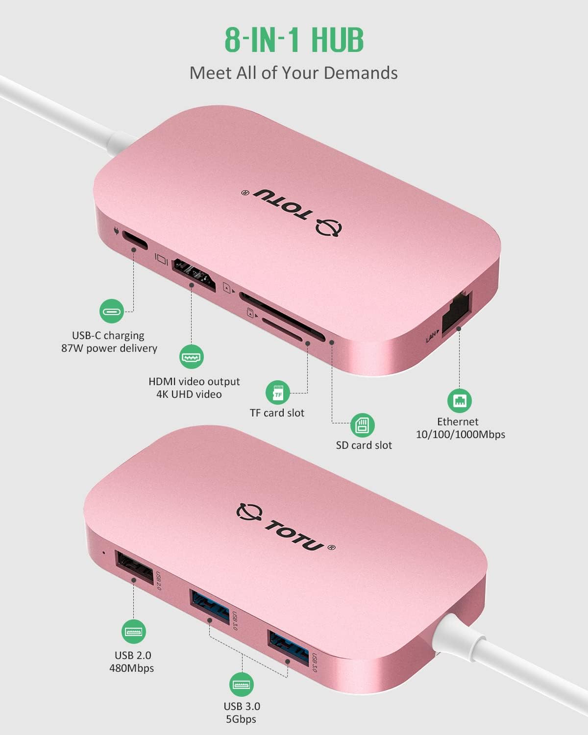 - Multiport connection: TOTU USB C hub includes 1 Ethernet/RJ-45 Port, 1 USB Type-C Female PD charging port, 1 HDMI port, 1 TF SD card slot, 1 SD card slot, 1 USB 2. 0 Type A port, 2 USB 3. 0 Type A ports. This USB C hub applies to all Type-C laptops.