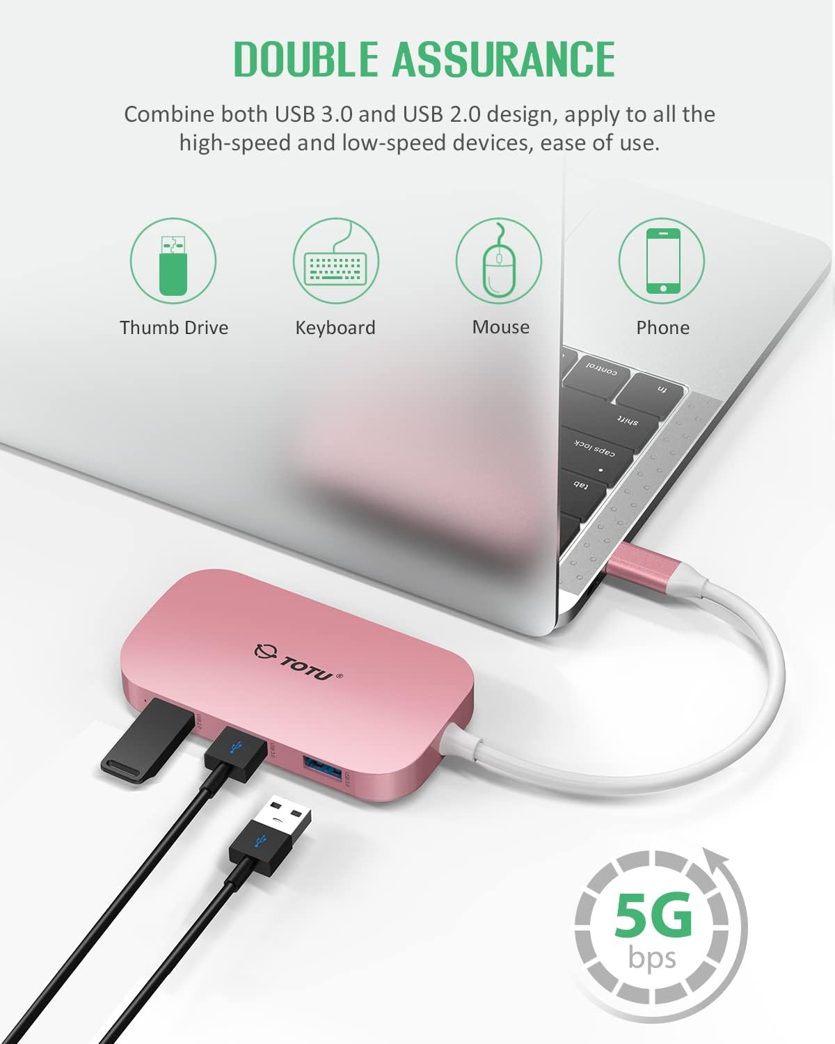- Compact and portable: TOTU USB C adapter is light and compact, you can put it in your pocket easily. You can conveniently take it on-the-go for business travel and more.