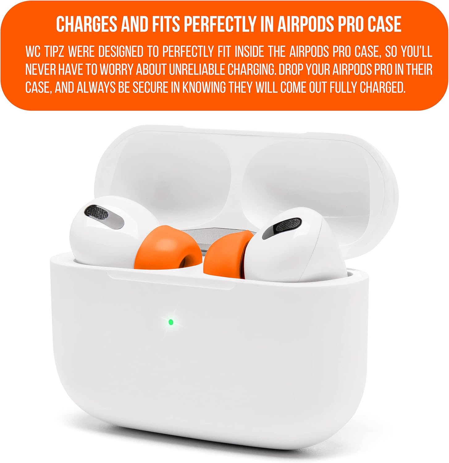 WC TipZ - Upgraded Memory Foam Ear Tips for Airpods Pro Made by Wicked Cushions | Improved Comfort, Tighter Seal, Better Foam Rebound Time | Fits Perfectly in Charging Case | Wicked Orange