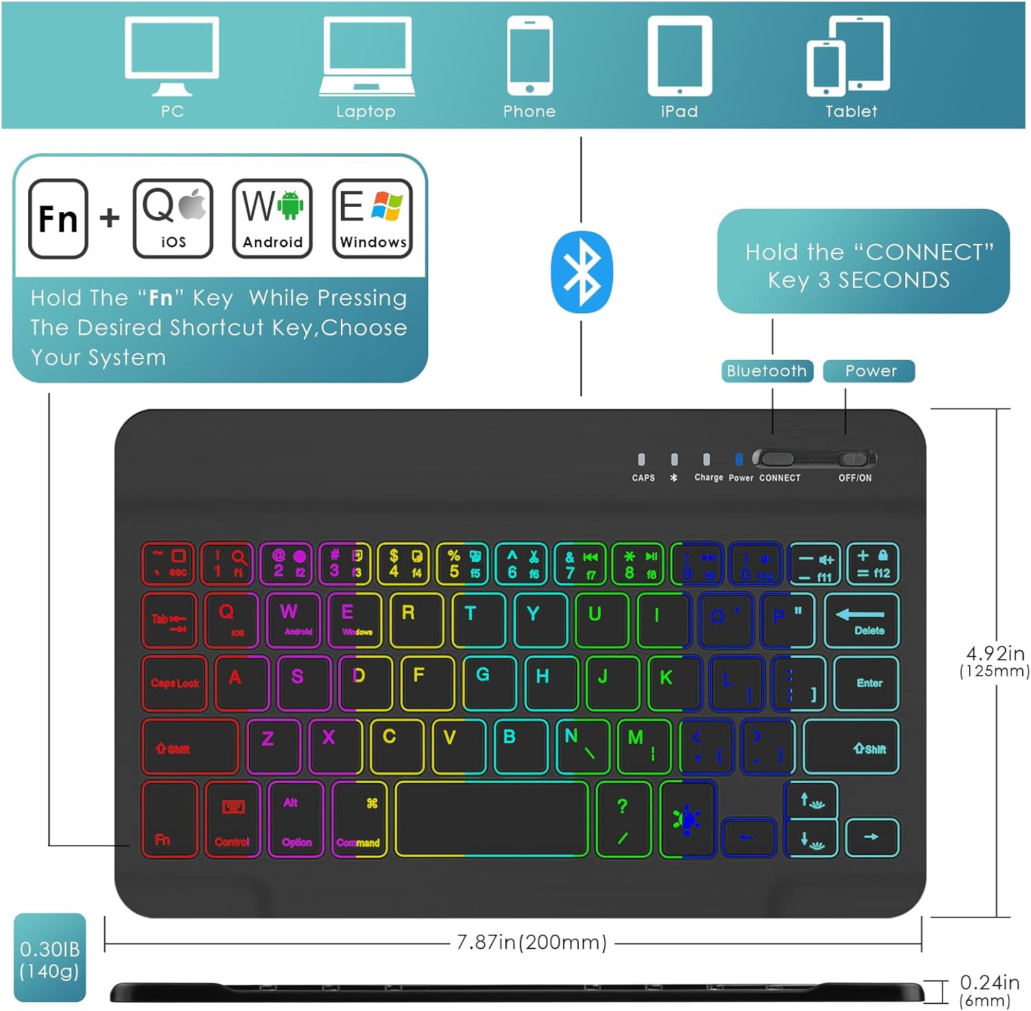 - 💻【7-COLORS BACKLIT KEYBOARD】-Funda para Samsung Tab A7 Lite 2021 keyboard detachable has 7 colors backlight, it can be adjusted to different colors you favor easily by pressing light-control buttons. Galaxy Tab A7 Lite 8.7 inch case provide excellent visual experience when you type in dark conditions
