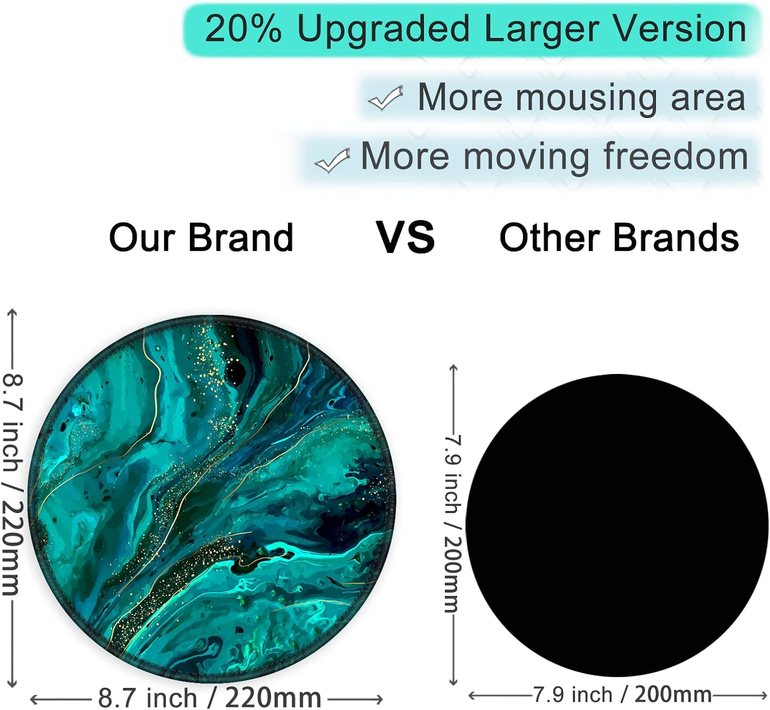 ITNRSIIET Round Mouse Pad with Stitched Edge Premium-Textured Waterproof Non-Slip Rubber Base Desktop Protection Mat Diameter 8.7 inches, Green Marble