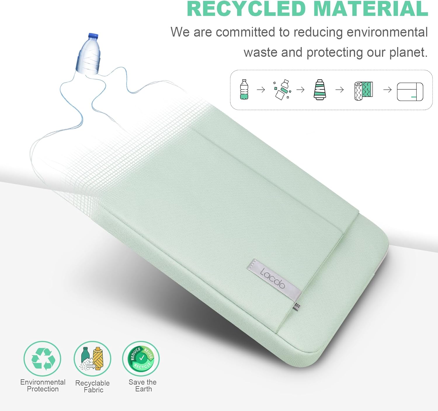 - Sustainable Innovation: By giving new life to discarded textiles, the laptop sleeve utilize sustainable polyester fabrics, focus on less waste to envronments, authenticated by (GRS)-certified, boast superior quality and social responsibility. Protecting your laptop and keeping it in long-term use while guarantees durable material with social criteria and dedicated to our planet's preservation.