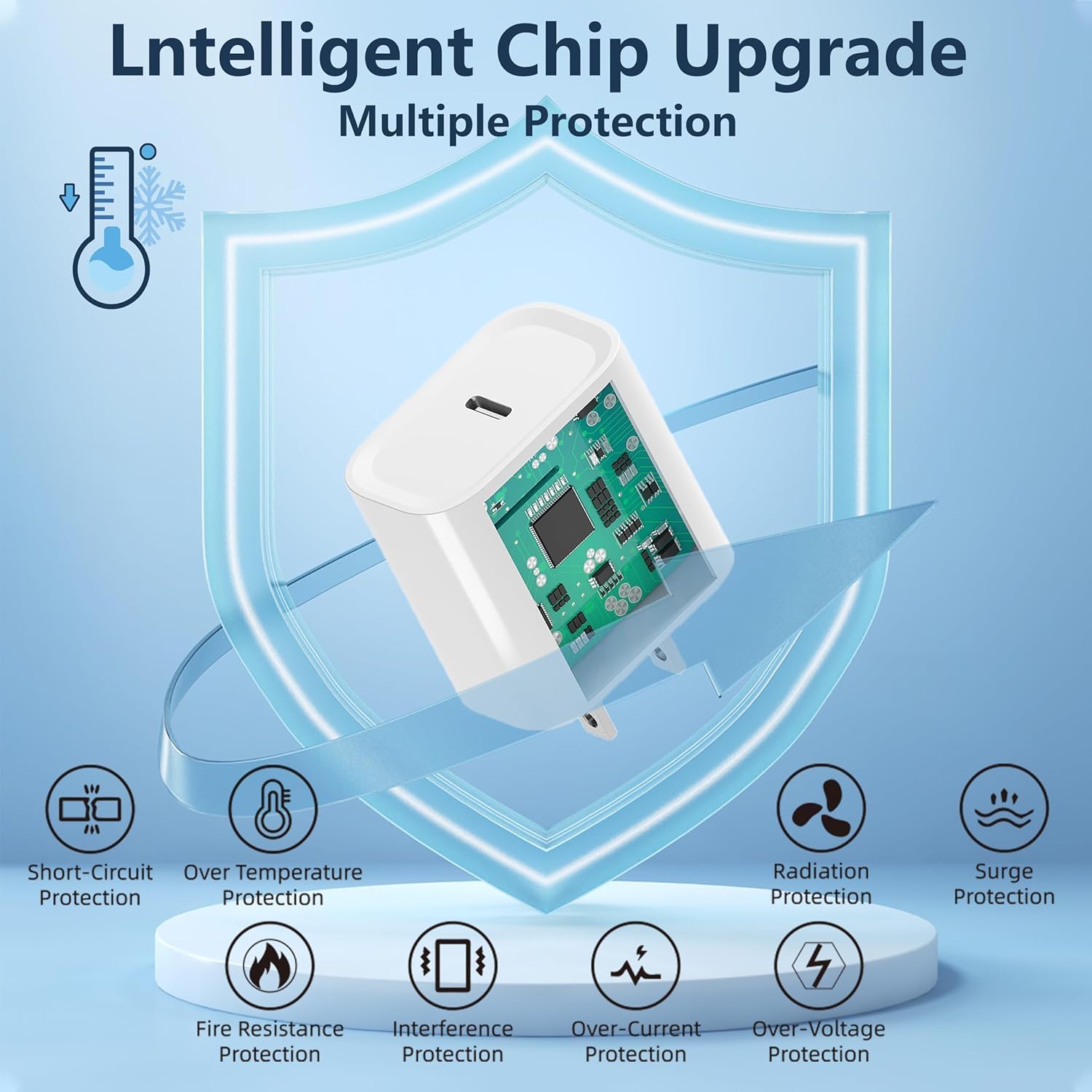 - 【Safety iPhone 16/15 charger fast charging】Our USB C iPhone 16 charger fast charging prioritizes safety with its comprehensive protection system, guarding against over-voltage, over-charge, and over-heating. Equipped with advanced smart chips, it intelligently adjusts the current to match your device's needs, guaranteeing a rapid and secure charging process for your iPhone 16/15/iPad Pro.