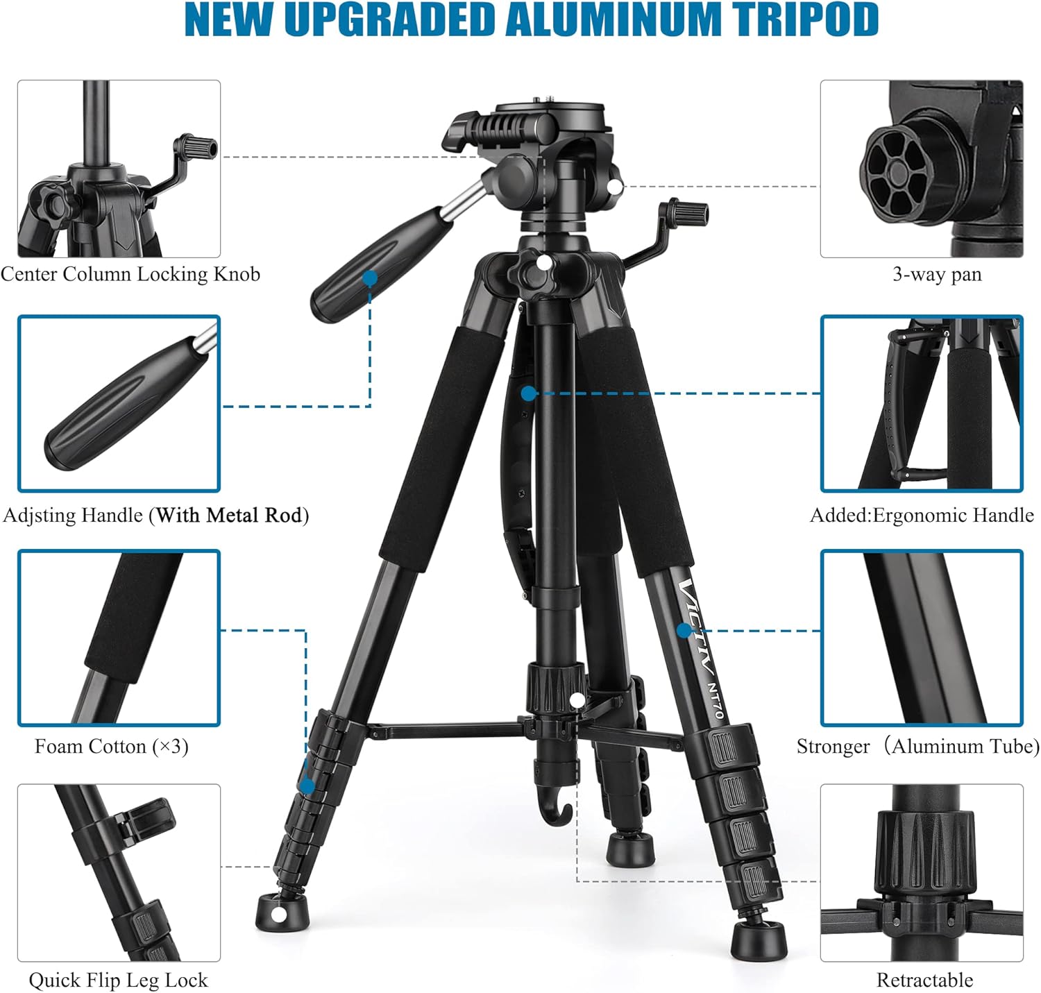 VICTIV 74” Camera Tripod, Tripod for Camera and Phone, Aluminum Professional Tripod Stand for Canon Nikon with Carry Bag and Phone Holder, Compatible with DSLR, iPhone, Spotting Scopes, Max Load 9.5Lb