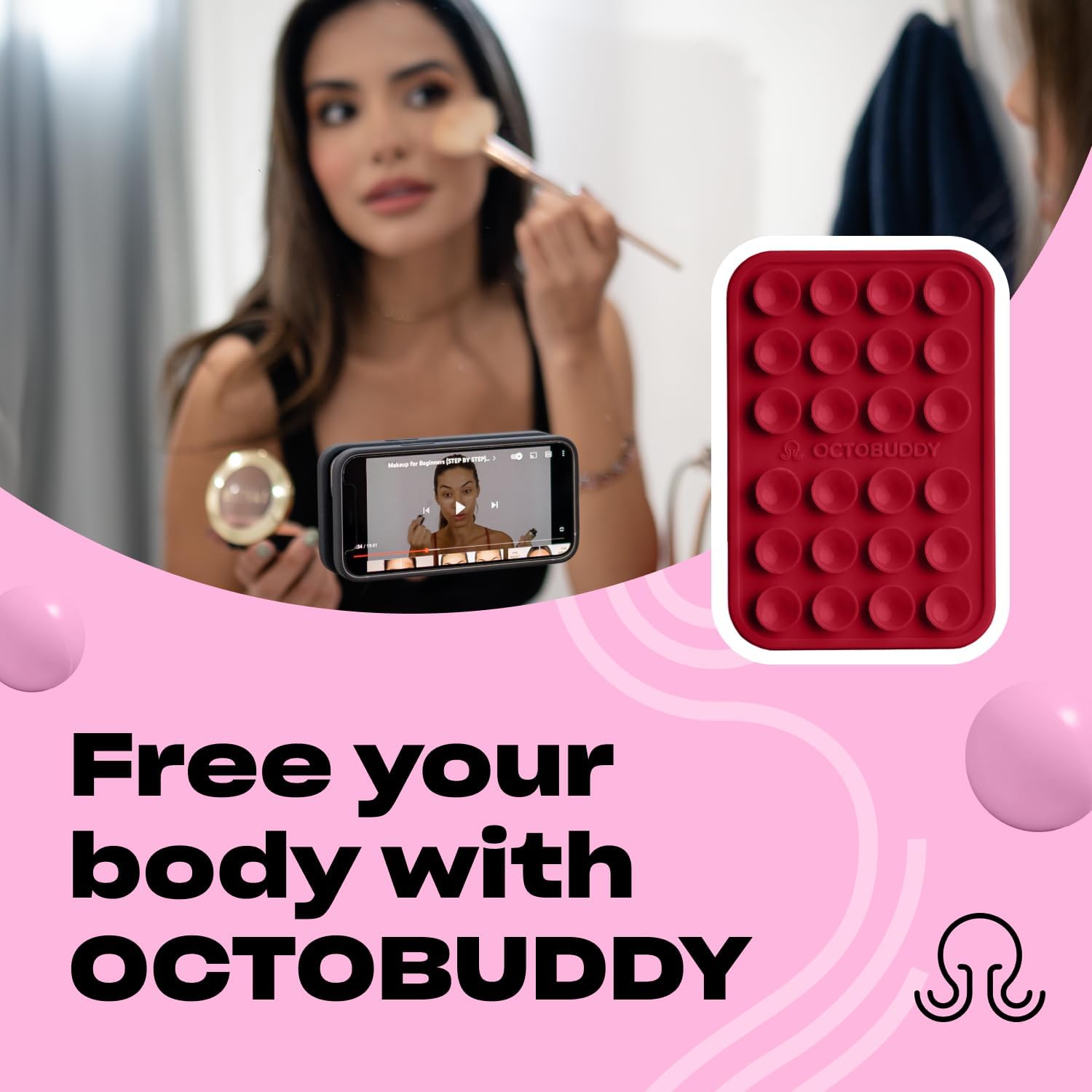 Classic - Silicone Suction Phone Case Adhesive Mount - Hands-Free, Strong Grip Holder for Selfies & Videos - iPhone & Android Compatible - 2.25″ x 3.25″, RED
