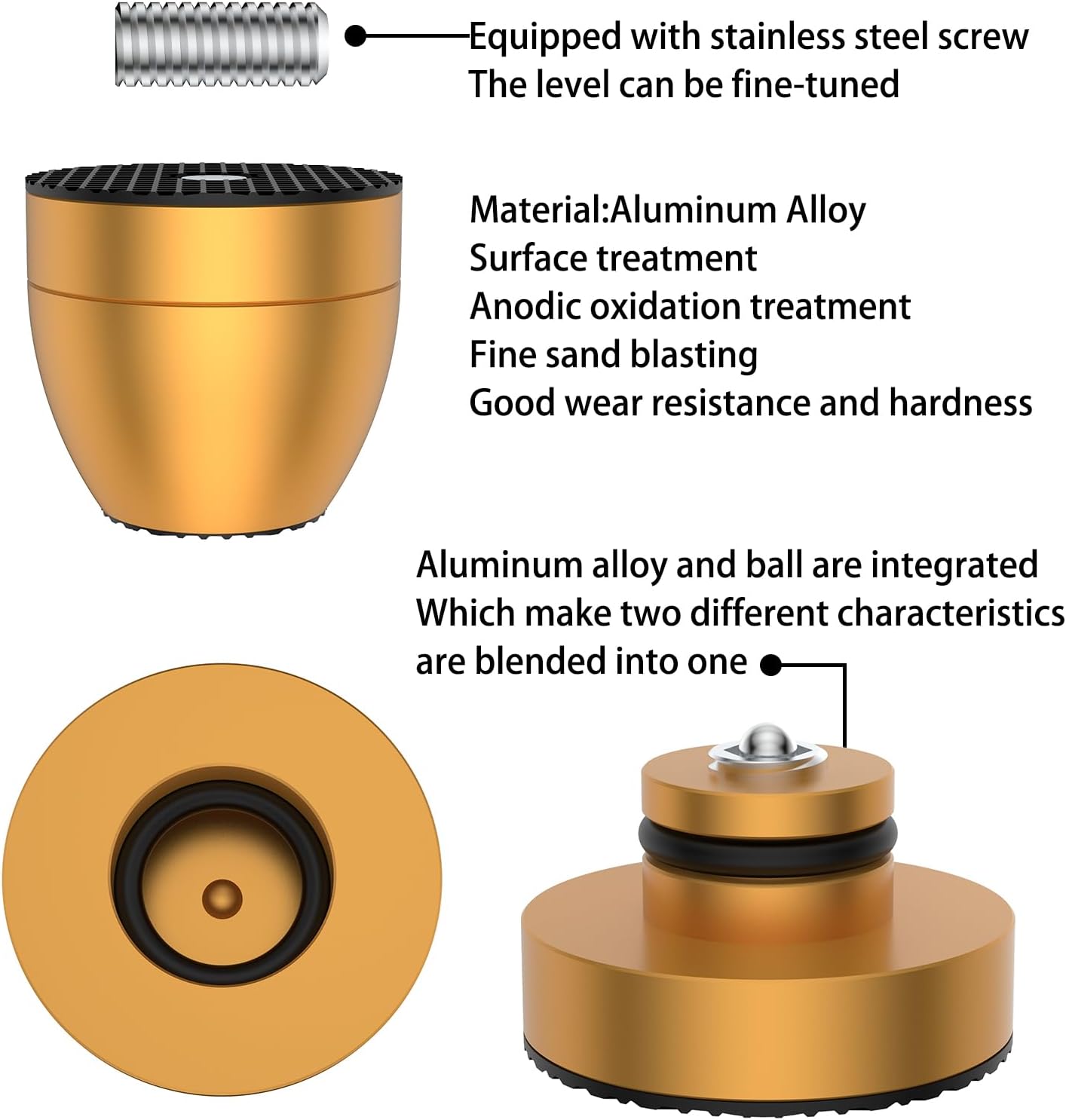 - Enhanced Sound Quality: The Tertullus 4 Pcs Ball Beads Speaker Isolation Feet Turntable Platform Pads provide optimal vibration isolation for your speakers, turntable, and other hi-fi components. The use of high-tech stainless steel ball bearings and precision milling ensures that sound-damaging resonances are reduced, resulting in a more open and deeper sound field, and vividly reflected details.