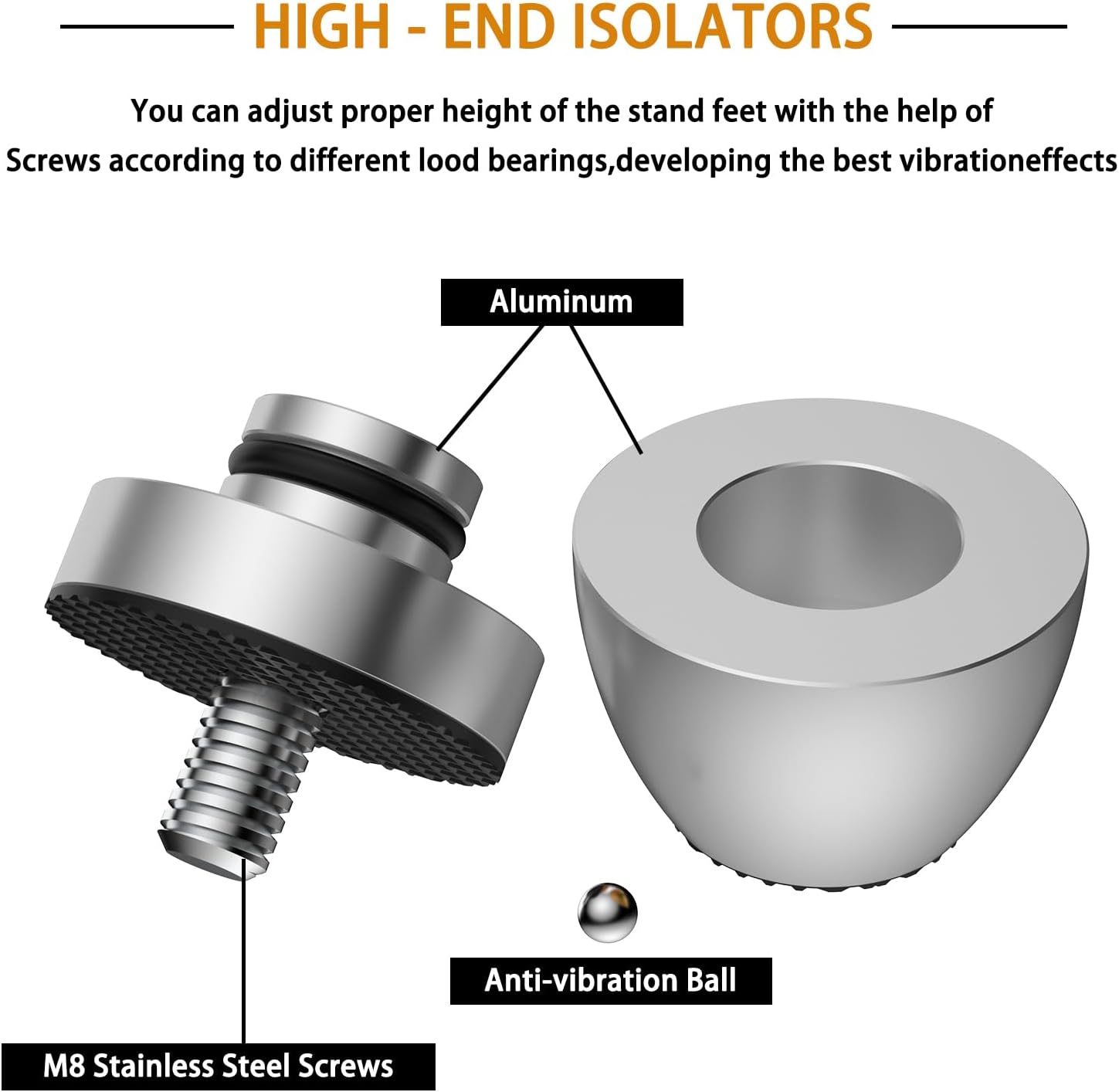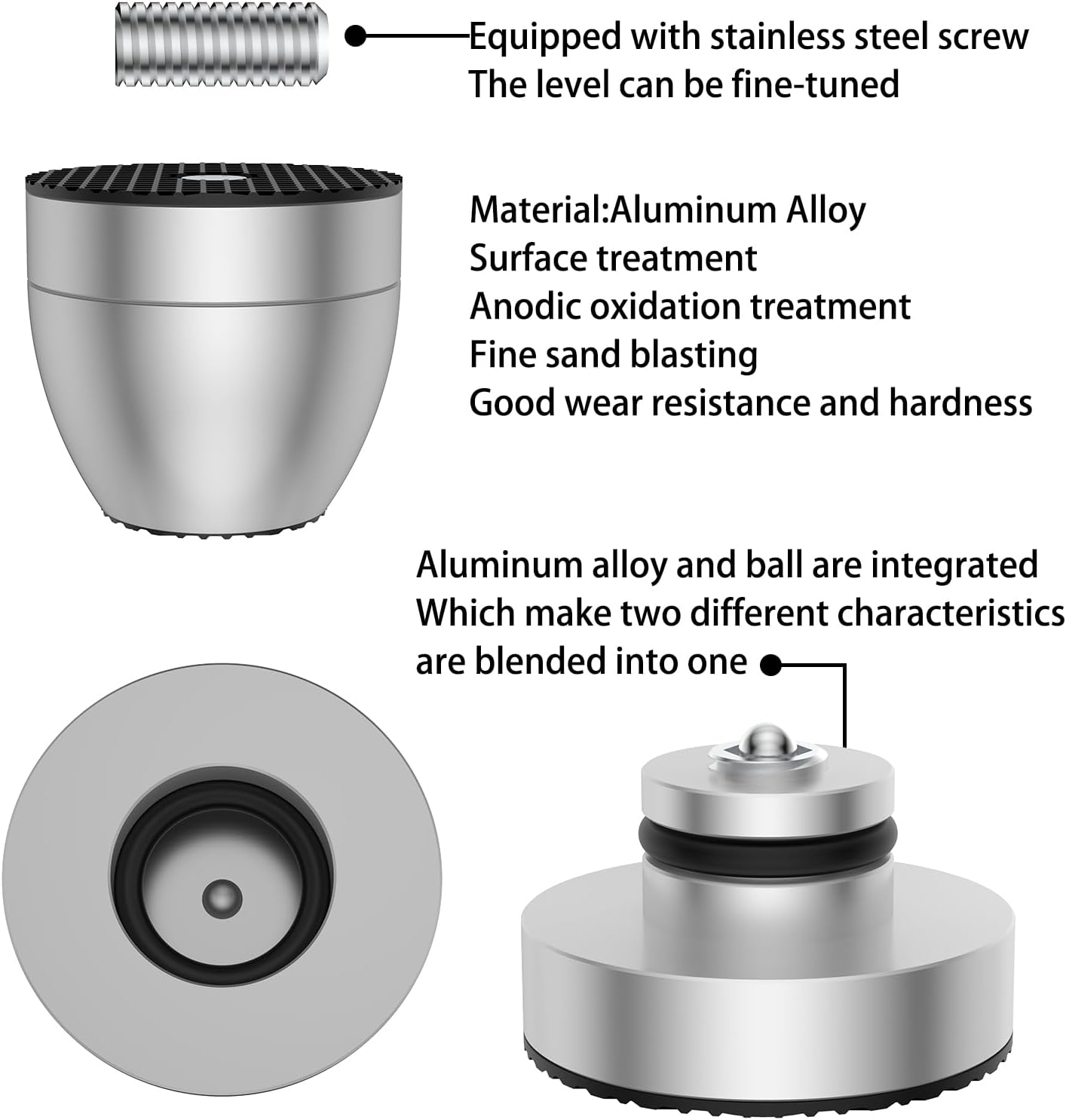 - Enhanced Sound Quality: The Tertullus 4 Pcs Ball Beads Speaker Isolation Feet Turntable Platform Pads provide optimal vibration isolation for your speakers, turntable, and other hi-fi components. The use of high-tech stainless steel ball bearings and precision milling ensures that sound-damaging resonances are reduced, resulting in a more open and deeper sound field, and vividly reflected details.