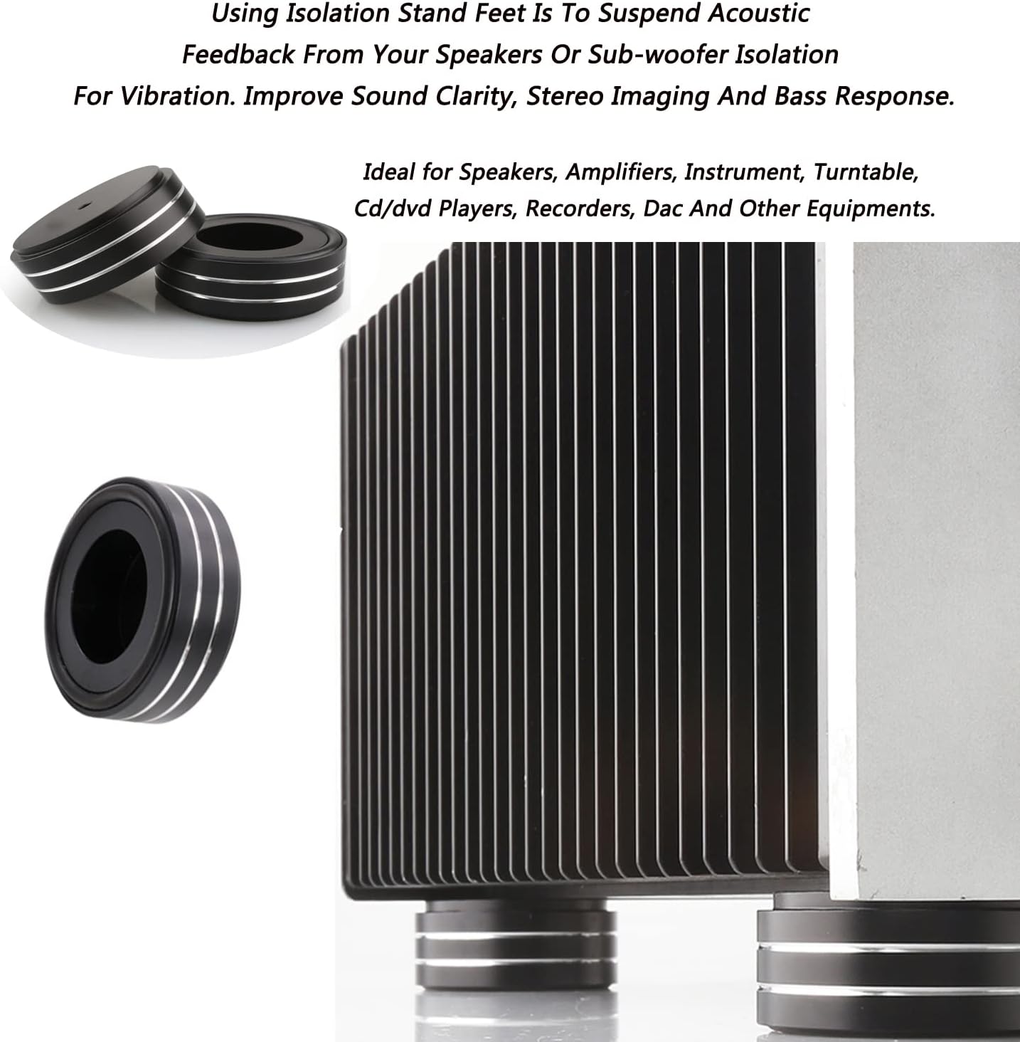 - Effective Vibration Isolation: By suspending acoustic feedback from your speakers or sub-woofer, our isolation stand feet reduce unwanted vibration and help you achieve a more focused, lighter, and quieter tone. Tertullus turntable feet can also help avoid disturbing those around you with excessive noise and vibration.