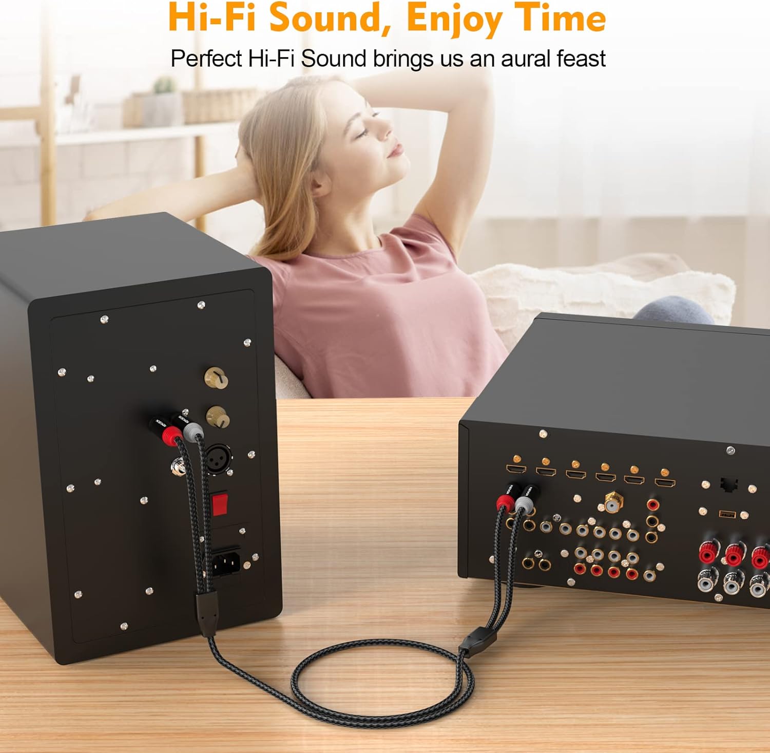 - [HI-FI Sound]: HOSONGIN RCA cable is using 26AWG Oxygen Free Tinned Copper Wire and double-layers of shielding, eliminates unwanted EMI/RFI interference noise or feedback for pure, clear audio.