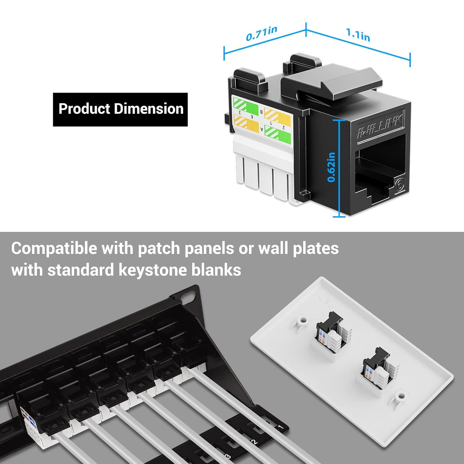 - Wide Compatibility: Iwillink Cat6 keystone jacks are compatible with most patch panels, surface mount boxes, or wall plates. Dimension: 1.1in L x 0.71 in W. PLEASE NOTE THE PRODUCT SIZE BEFORE PURCHASE