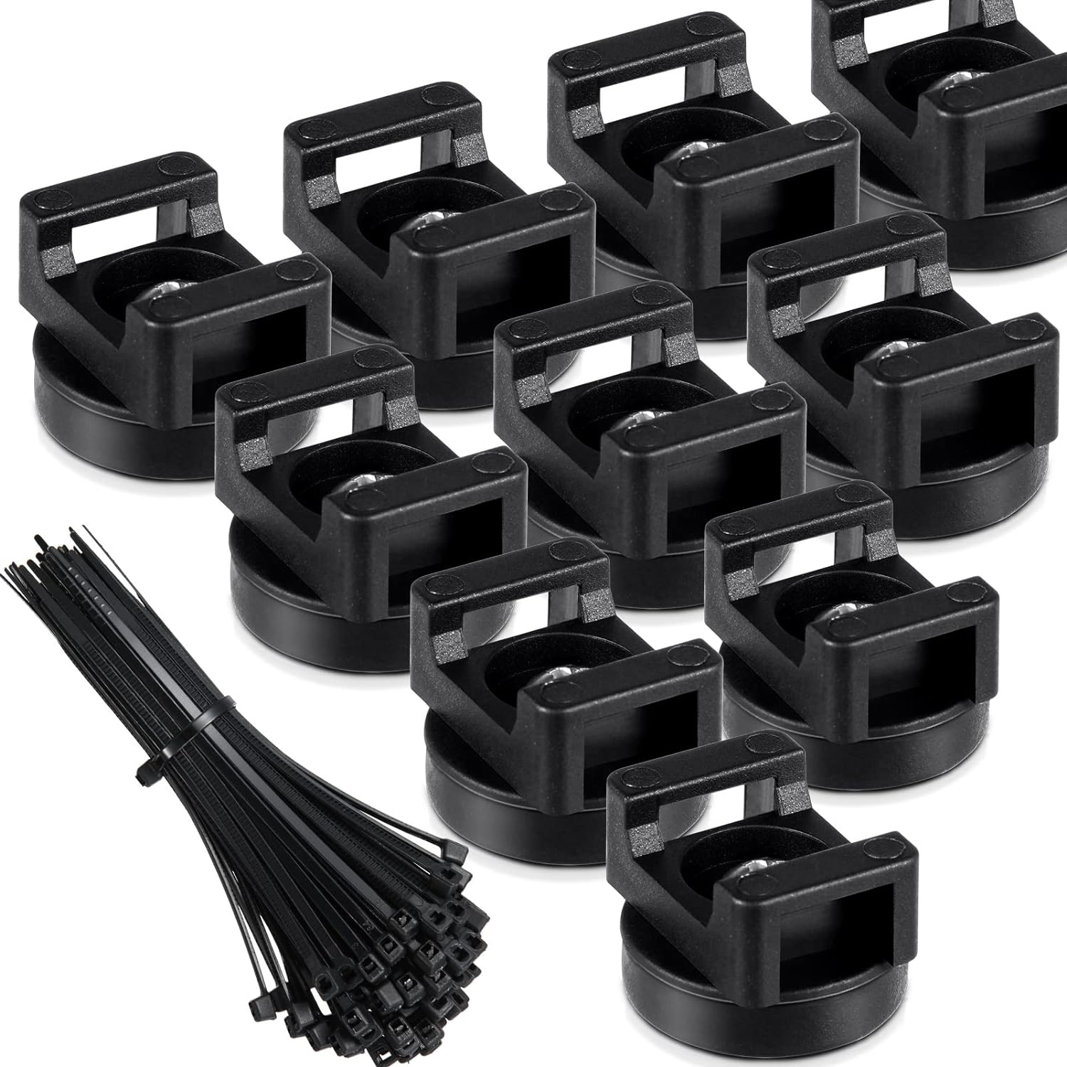 - Practical combination: the package includes 10 pieces of magnetic cable tie mounts and 50 pieces of nylon cable zip ties, 60 pieces in total, and each magnet can withstand a maximum vertical pull of approx. 11.5 pounds, offering sufficient quantity for your daily demands and bringing you lots of conveniences