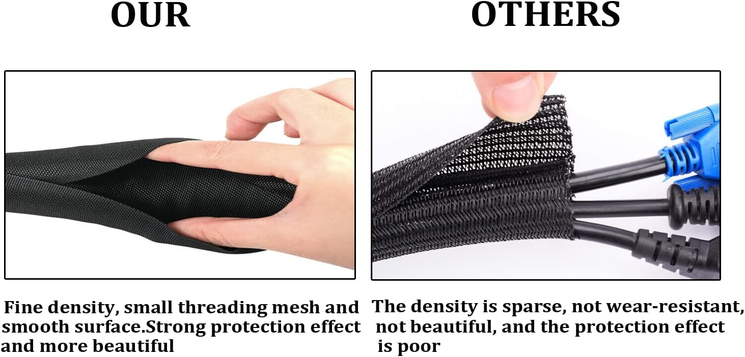 - Wire Cable Management Wrap :Split-Sleeve Wire Loom low-cost and time-saving way can make your wiring settings orderly. Make your home or office no longer have messy harness, beautiful hidden TV and computer cables