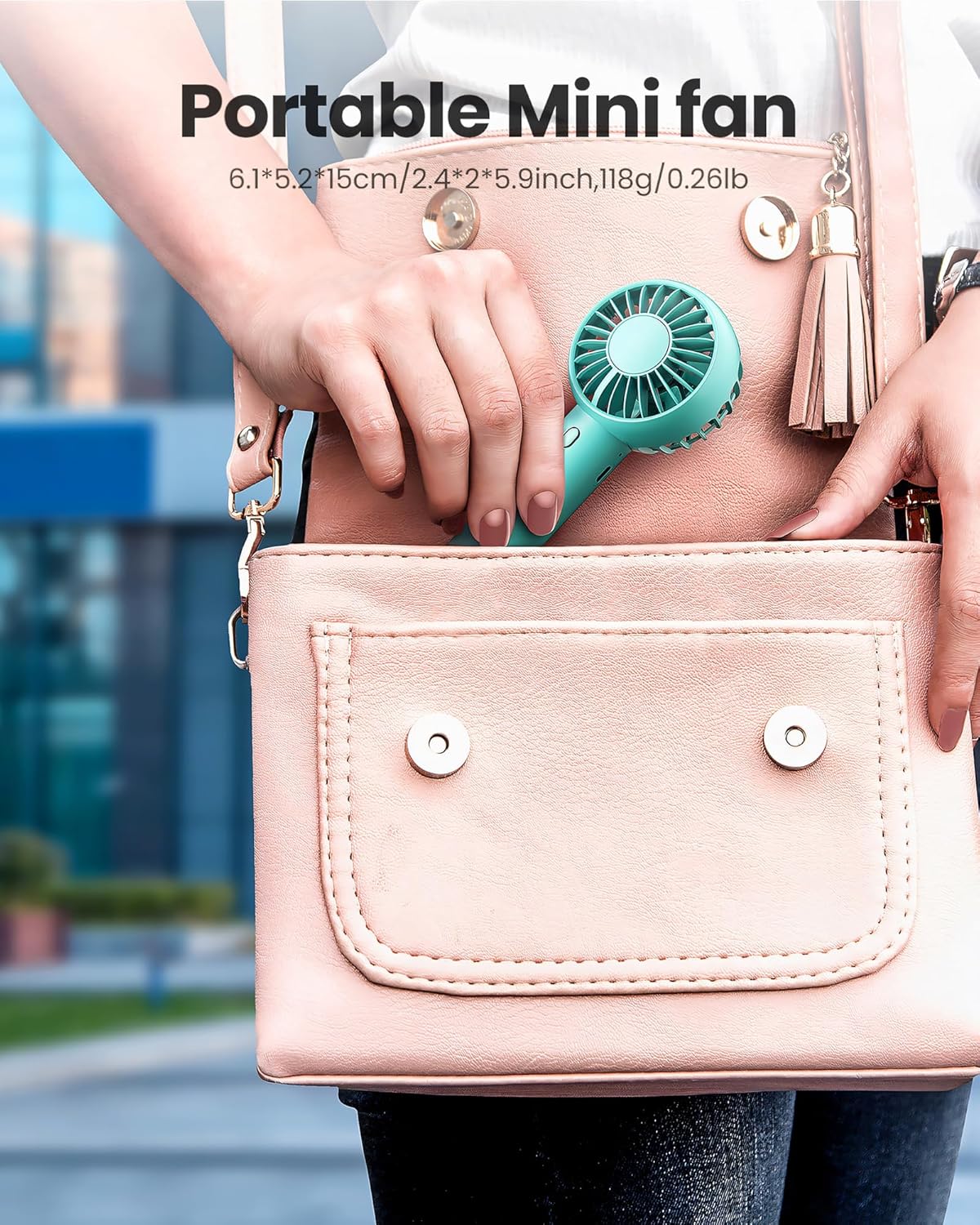 Gaiatop Mini Portable Fan, Small and Powerful, Cute Design 3 Speed Personal Handheld fan and Desktop with Base, Lightweight USB Rechargeable for Travel Lash Makeup Girl Women Summer Gift Green