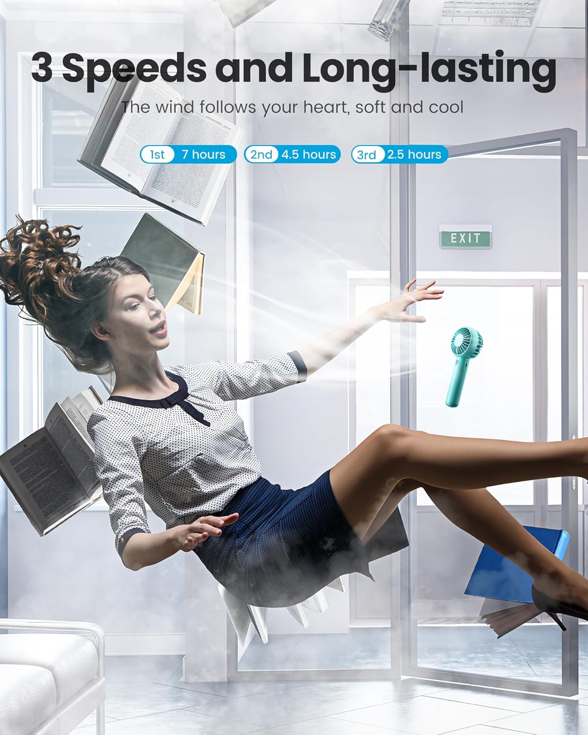 - Powerful wind & 3-speed setting: Built-in powerful brushless motors, which can generate strong wind; The hand fan has 3 adjustable wind speeds, press it for low-speed 3500r/m, medium speed 4500r/m, and high-speed 7500r/m