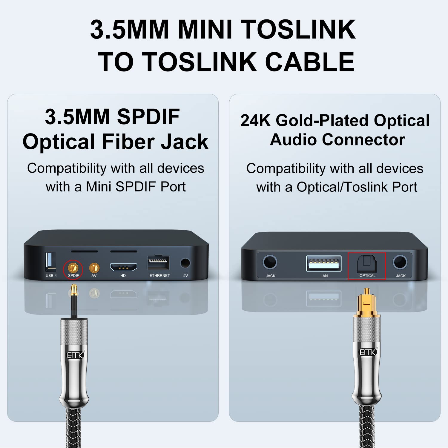 - Cable Type : Mini Toslink to Toslink, optical cable, optical cable for soundbar to tv, opticdigital optical audio cableal audio cable Mini Toslink to Toslink, optical cable, optical cable for soundbar to tv, opticdigital optical audio cableal audio cable