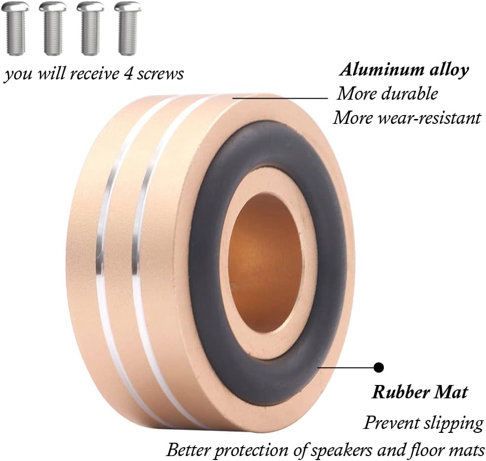 - ② Durable and High-Quality Materials: Made of solid aluminum, the cooling-looking brushed aluminum feet have a fine sandblasting anodizing process, a delicate artwork product that's well-built and has a nice finish. The speaker isolation feet pad comes with a rubber ring and removable non-slip shock absorber rubber O-ring, while the rubber bottoms keep the feet stable, preventing them from moving.