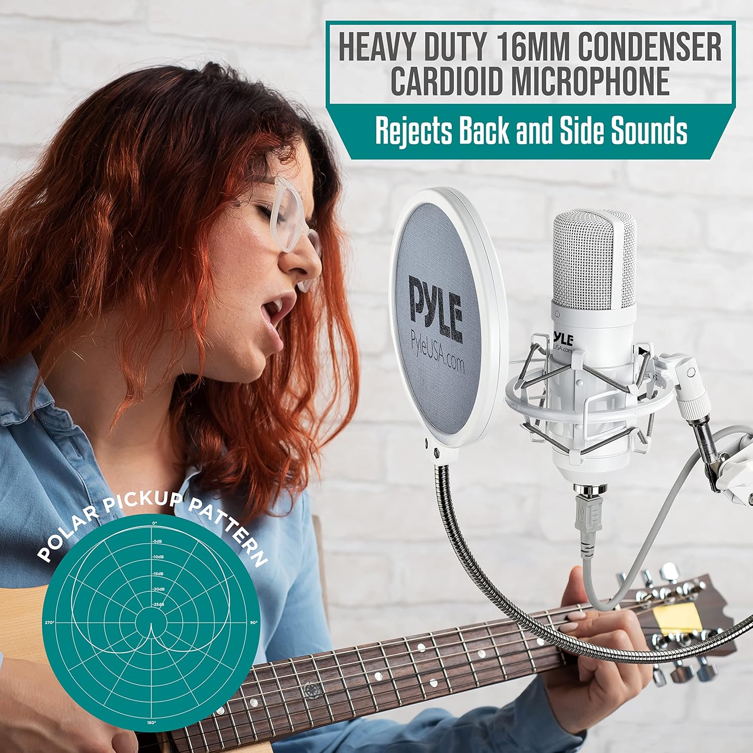 Pyle USB Condenser Microphone Streaming Kit - Professional Computer/Mac Mic Audio Cardioid Boom with Adjustable Arm Stand & Pop Filter for Podcast, Gaming, Studio, YouTube