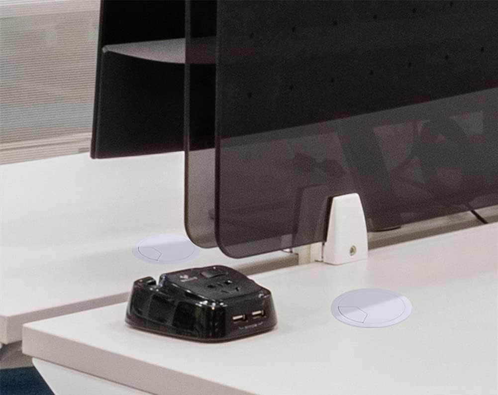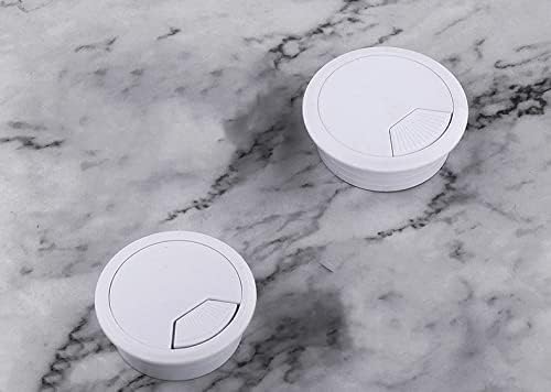2pcs 2 inch Desk Wire Cord Cable Grommets Hole Cover for Office PC Desk Cable Cord Organizer Plastic Cover Black (White-2Pcs)