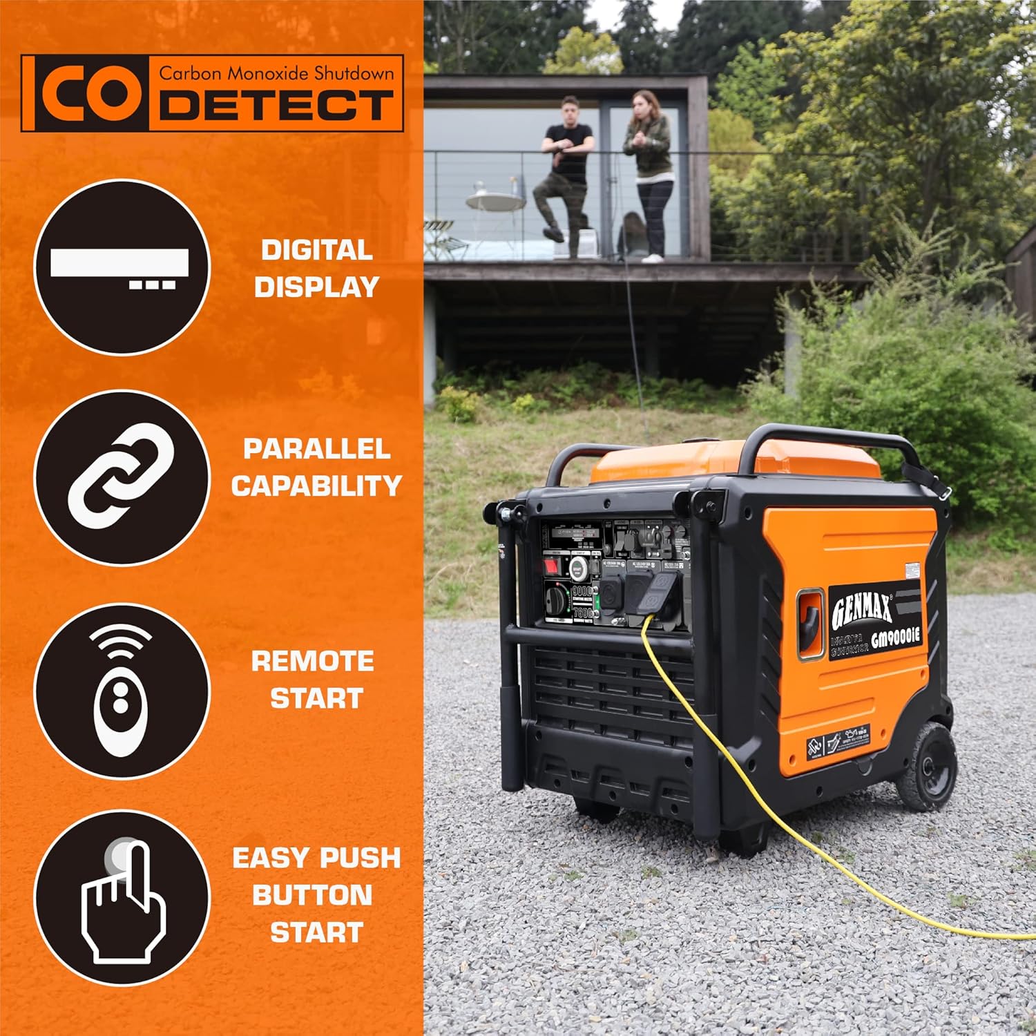- 【Parallel Function】Voltage Transfer switch allows you parallel both 120V or 240V. Just using parallel cord to connect two GM9000iE inverter generators together to double your power to 18,000 peak watts and 15,200 running watts. ( Parallel cord sold separately much cheaper than parallel kit )