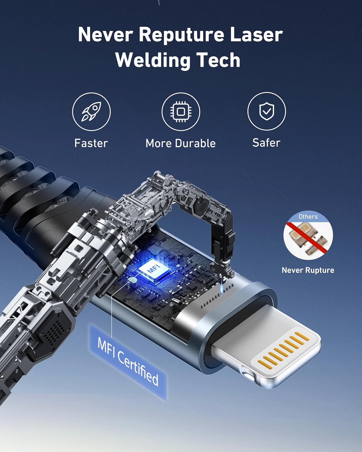 - MFi Certified Lightning Cable: This 10 FT iPhone Charger for your lightning devices. Built with original chip promise NO WARNING MESSAGE pops up, ensures that your lightning devices are loaded and charge safely and faster at maximum speed. MFi-certified cables provide a safe and stable charging solution for your devices