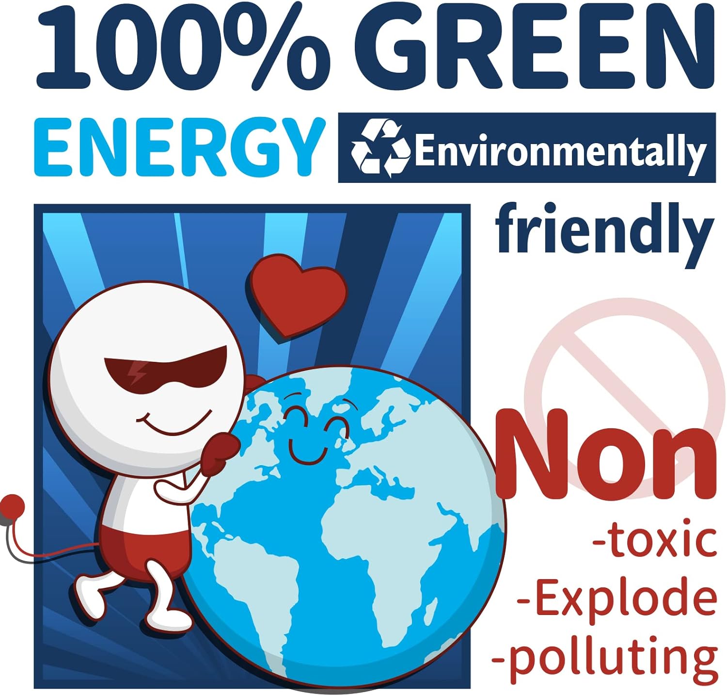 - 【100% Carefree】The stable chemical structure makes LiFePO4 battery not burn even at high temperatures, short circuits. Nontoxic and pollution-free. leaving no pollution to the environment while charging and discharging. Highest-level safety, non-toxic, renewable energy, eco-friendly for environment.