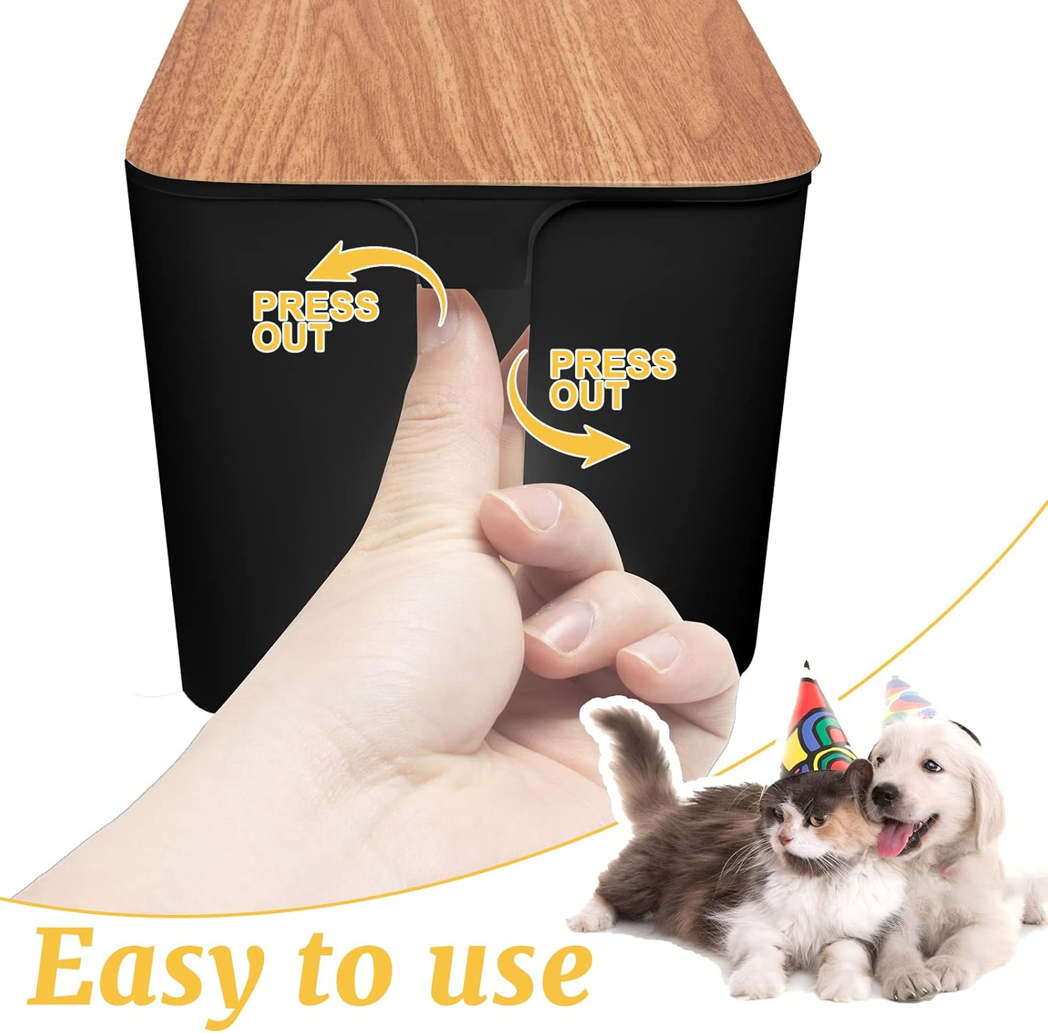 - 【Style Meets Practicality】With a stylish matte black finish and simulated wood grain, it will blend in with any decor.More stain-resistant than wooden lids, A home office and desk cable organizer conceals/protects cords and power strips which can help prevent power strips or electrical equipment or cords from touching carpet or flooring.