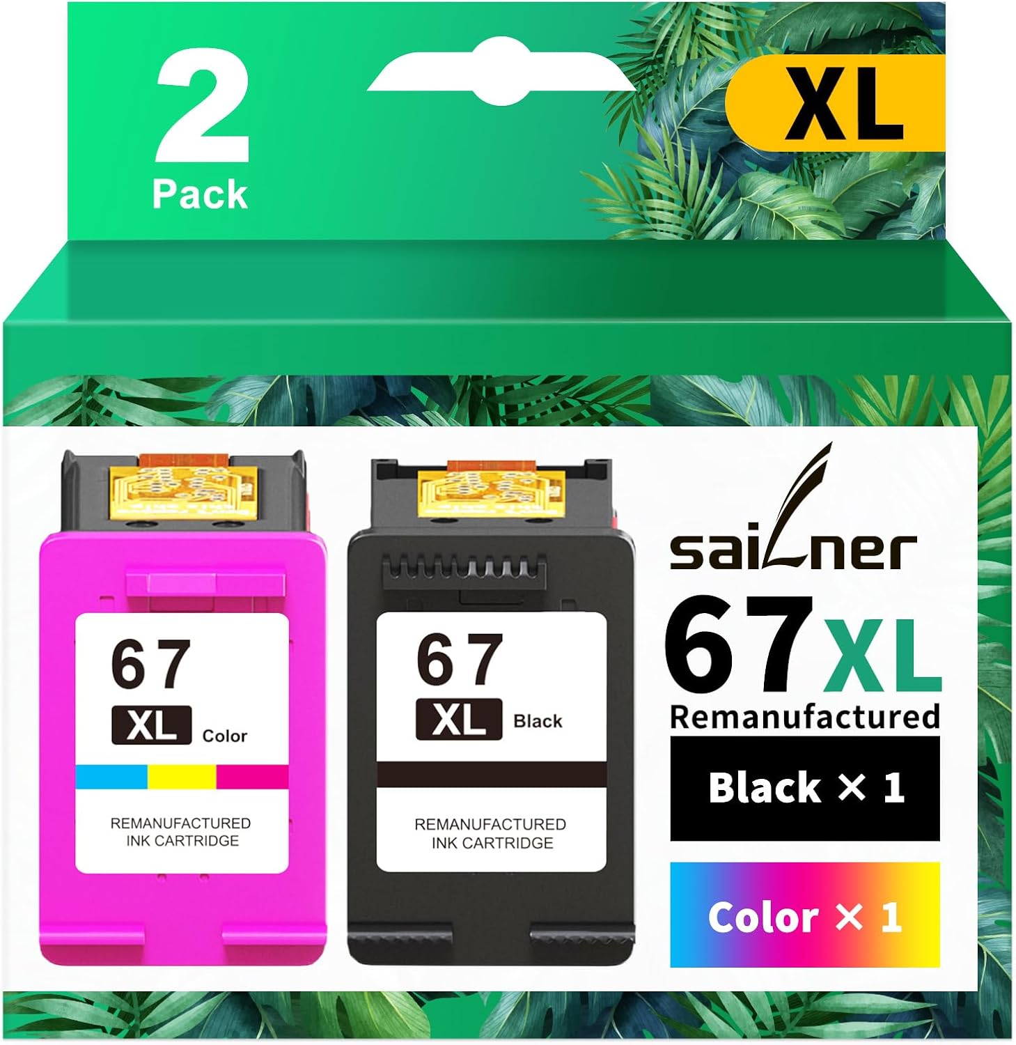 SAILNER 67XL HP Printer Ink, Replacement for HP Ink 67 for HP 67 Ink cartridges Black/Color Combo Pack, Compatible with DeskJet 2755e 2855e 2700e 4155e 2734e 2827e 4100e Envy 6055 6455e Printer 67XL