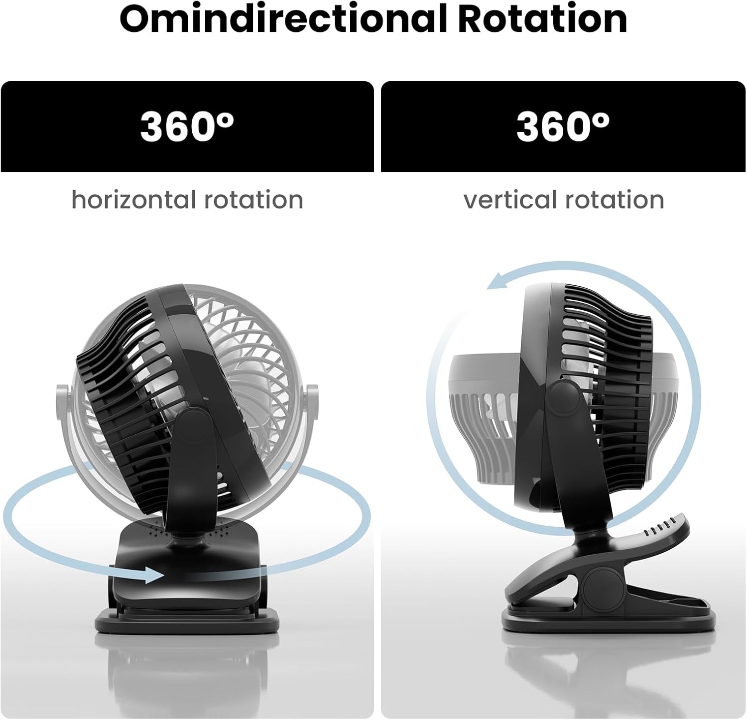 - ✅【COMPACT】: Compact (0.61 LB/276g) and portable handy design makes the USB desk fan space-saving; lightweight clip fan and desk fan 2 in 1, easy to carry and store, can be placed or clipped anywhere you want, great for your bed, baby stroller, home, office, gym workout, outdoor, camping, trips, golf cart, etc
