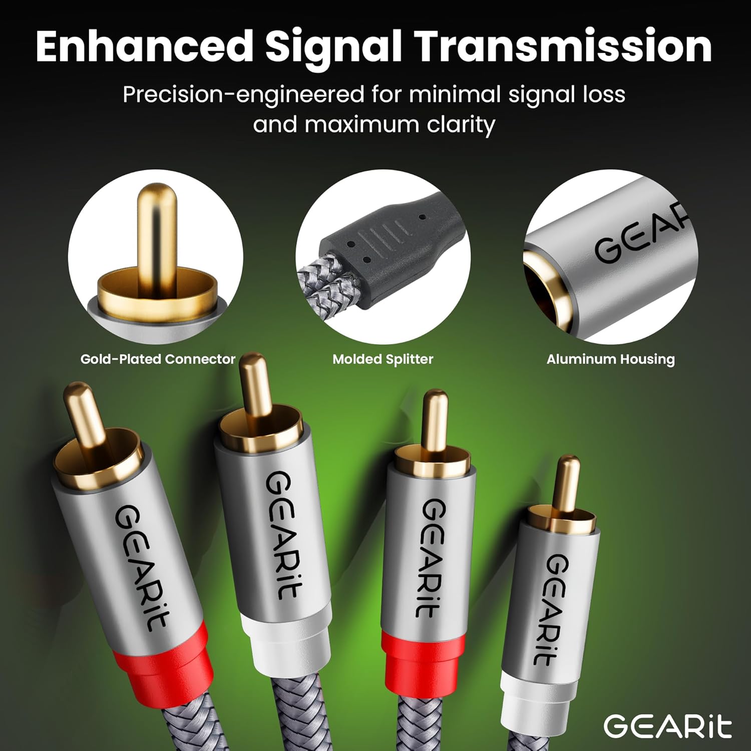 GEARit RCA Cable (50FT) 2RCA Male to 2RCA Male Stereo Audio Cables Shielded Braided RCA Stereo Cable for Home Theater, HDTV, Amplifiers, Hi-Fi Systems, Car Audio, Speakers, 50 Feet