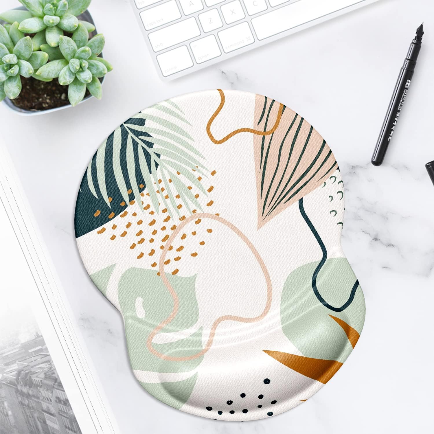 ITNRSIIET Ergonomic Mouse Pad with Gel Wrist Support Small Wrist Rest Smooth Surface Non-Slip PU Base Comfortable Office Supplies Pain Relief, 8.7 x 7.2 inches, Tropical Plants