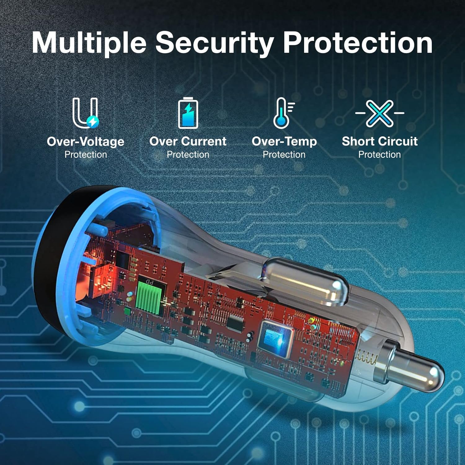MOCA 51W QC 3.0 Fast Charging W/ 2pcs 3.3ft A-P/C-P Cable Car Charger for iPhone 16/15/14 Pro Max/Plus/16e, iPad, Samsung Galaxy S25/S24/S23 Ultra, Pixel, Android, PD/QC Car Phone Adapter Accessories