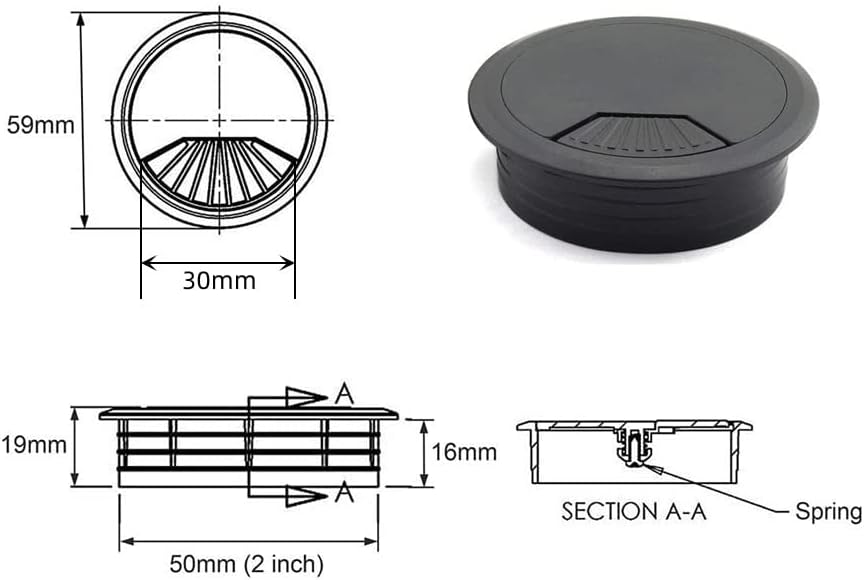 - Package and Quantity: Pack of 4pcs 2 inch black Desk Grommet Hole Cover,suitable for 2 inch (50mm) hole.