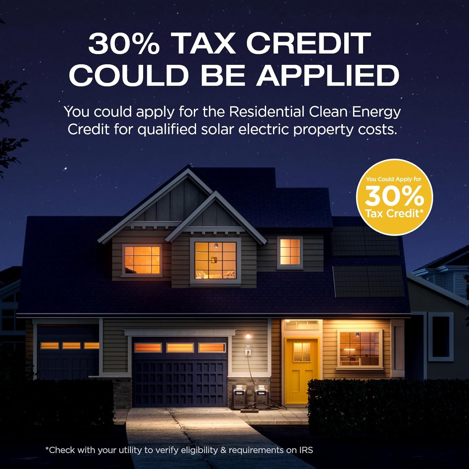 - 30% Tax Credit Could be Applied. You could apply for the Residential Clean Energy Credit for qualified solar electric property costs. Please check with your utility to verify eligibility & requirements for Residential Clean Energy Credit programs.