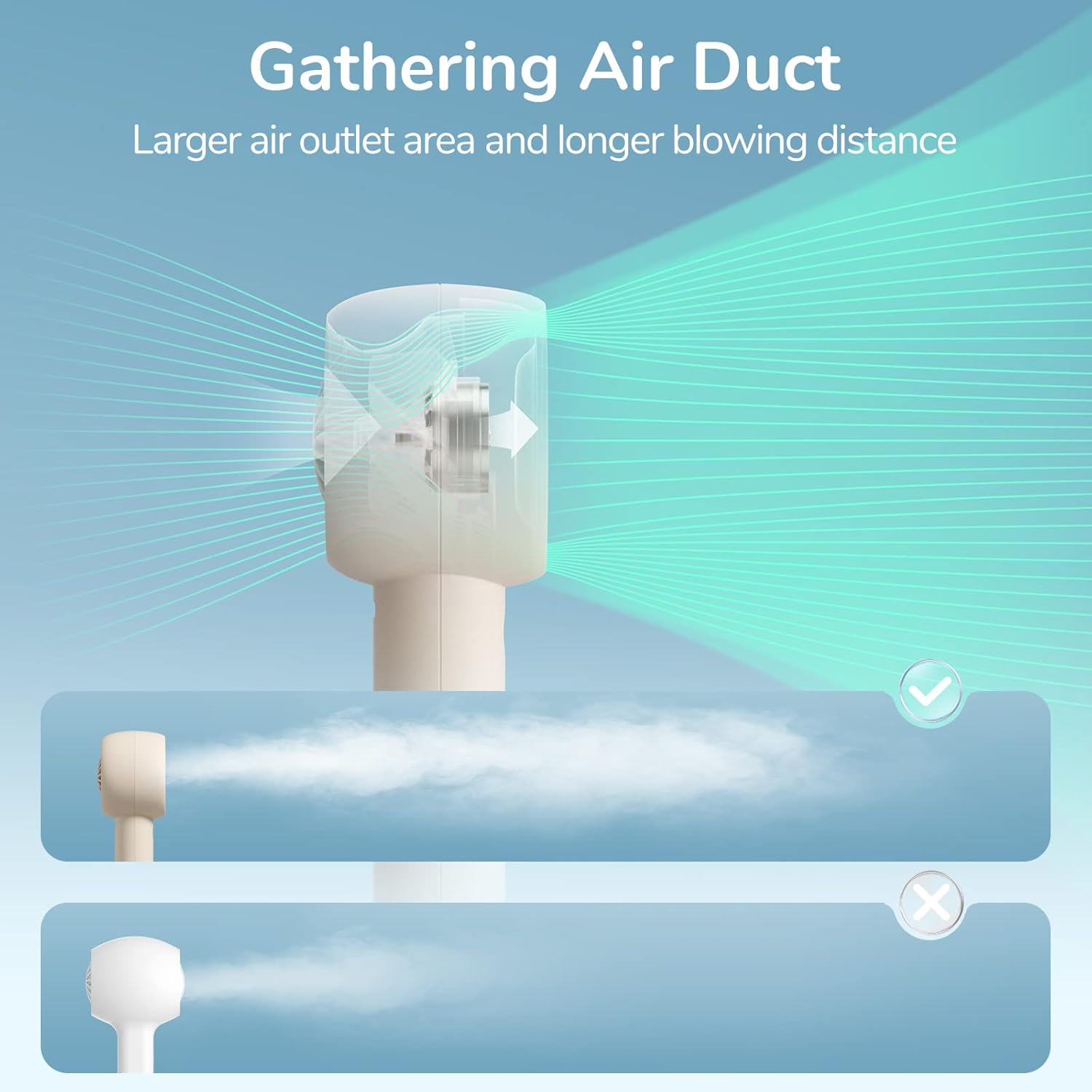 - Upgraded Turbo Engine: Aircraft engine turbine technology to provide super power. The air volume of the handheld fan is 30% higher than that of ordinary fans. The speed is as high as 7500r/min. The 7 wedge-shaped fan blades absorb wind force, and the wind force is increased by 3 times through the air duct